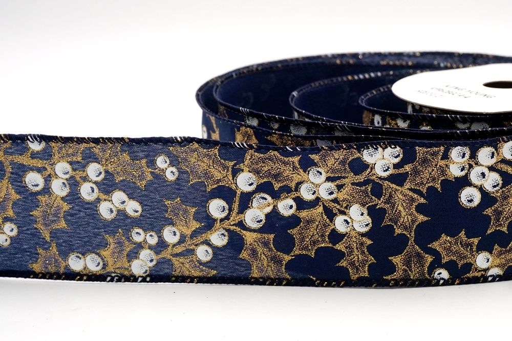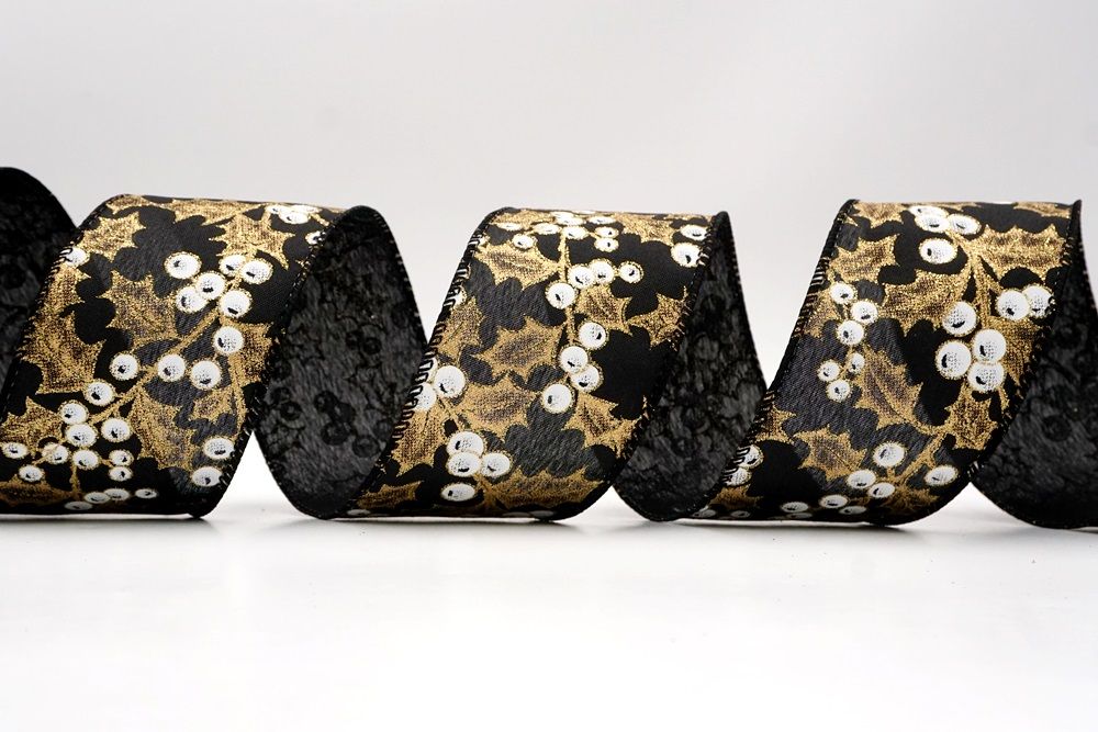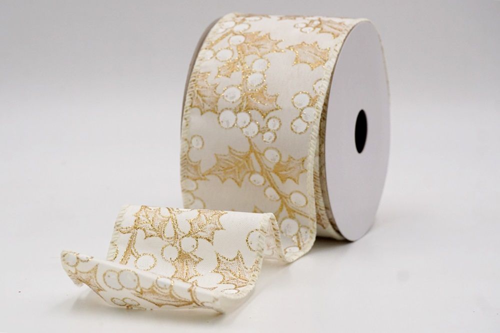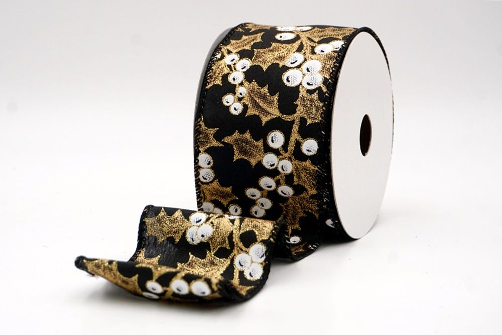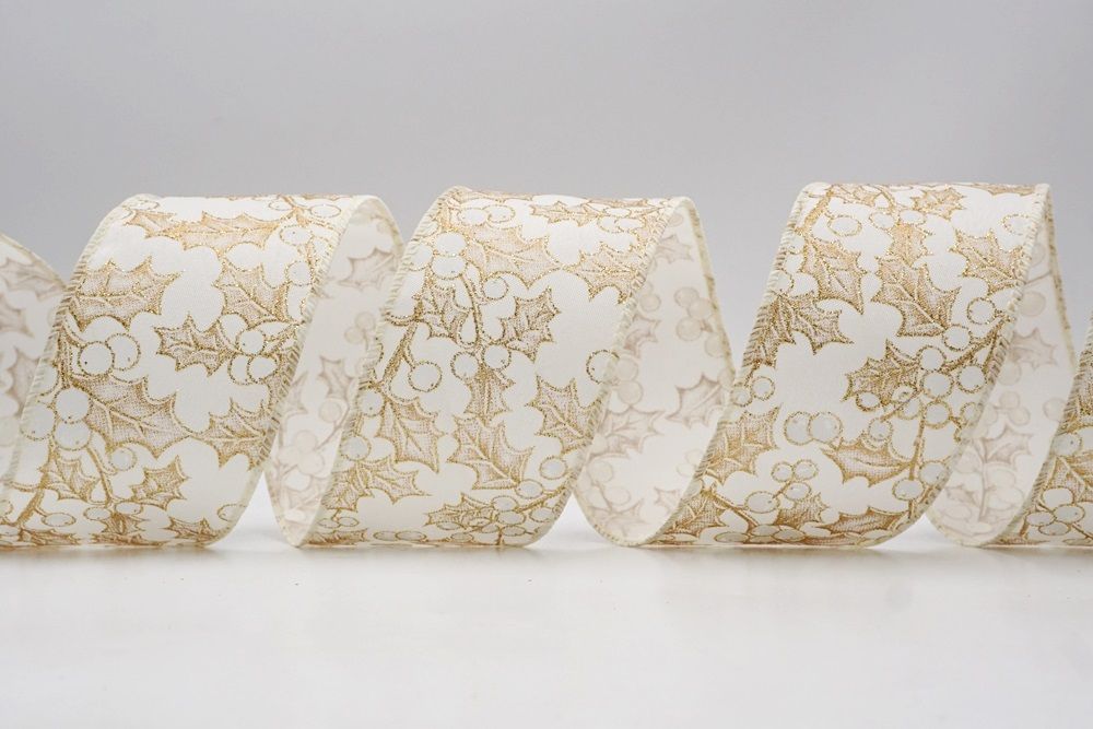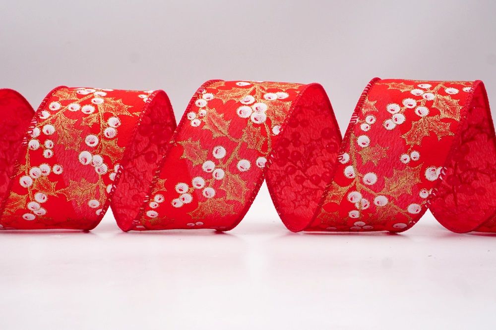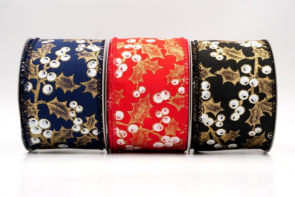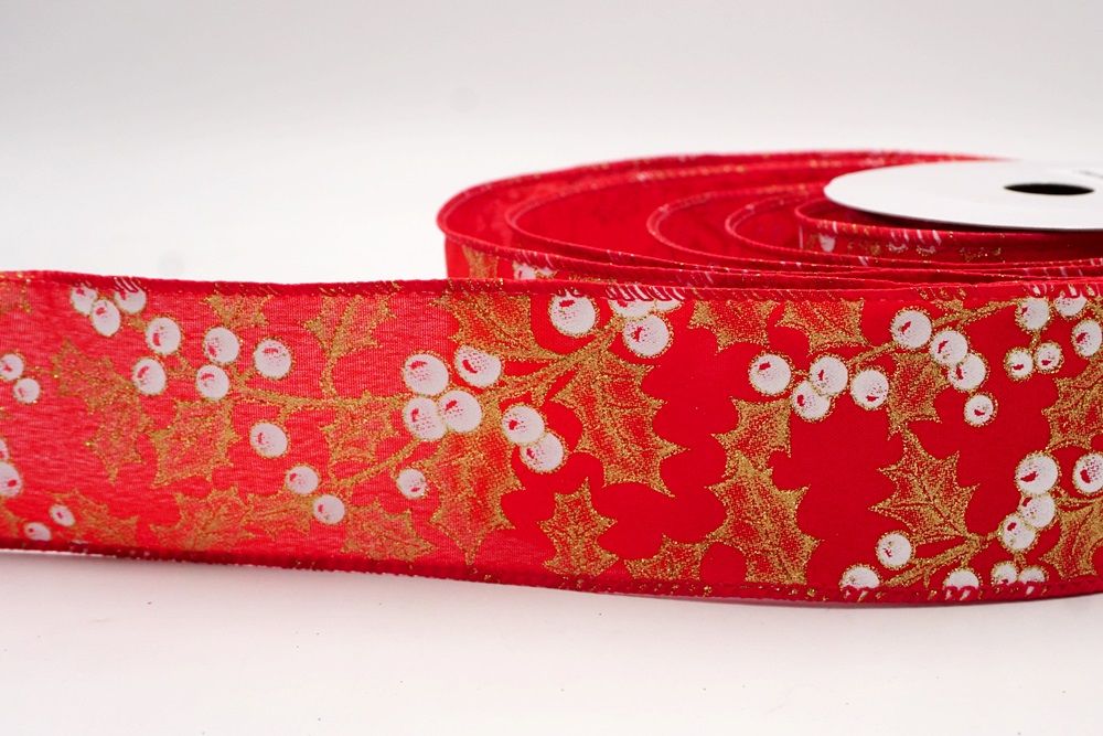 Ruban en fil de houx de Noël avec feuilles et baies_KF9630.KF9631