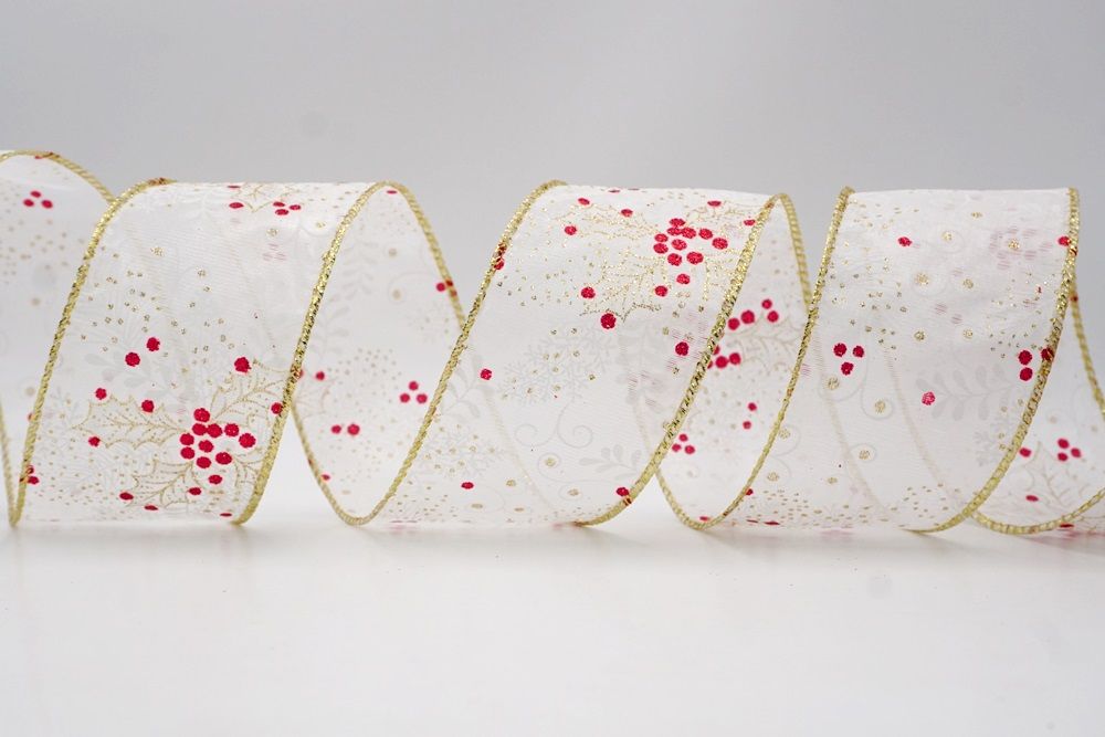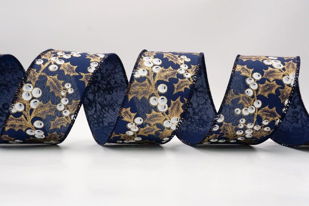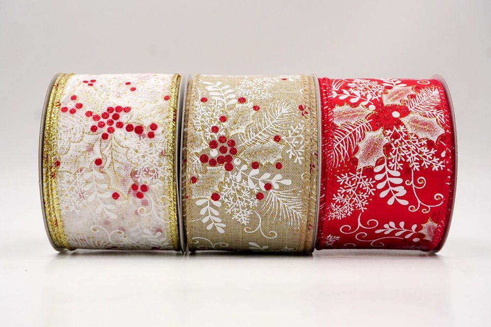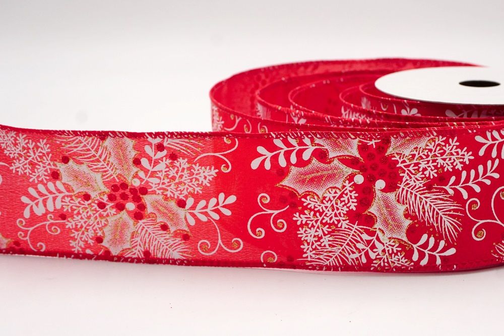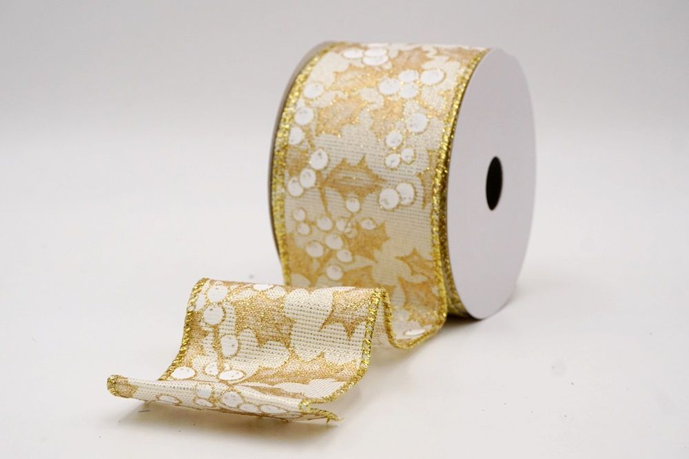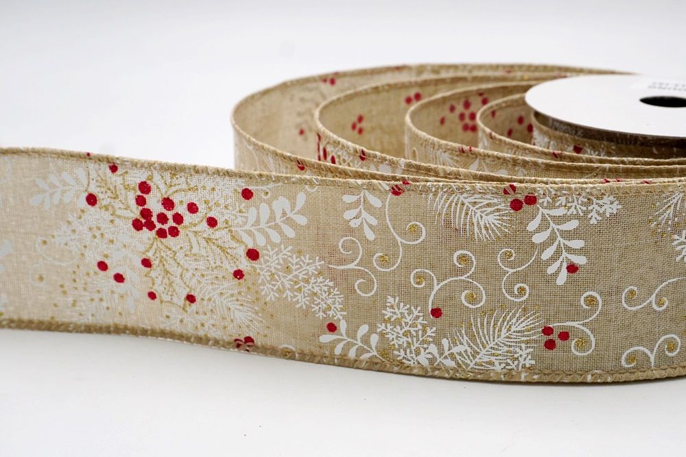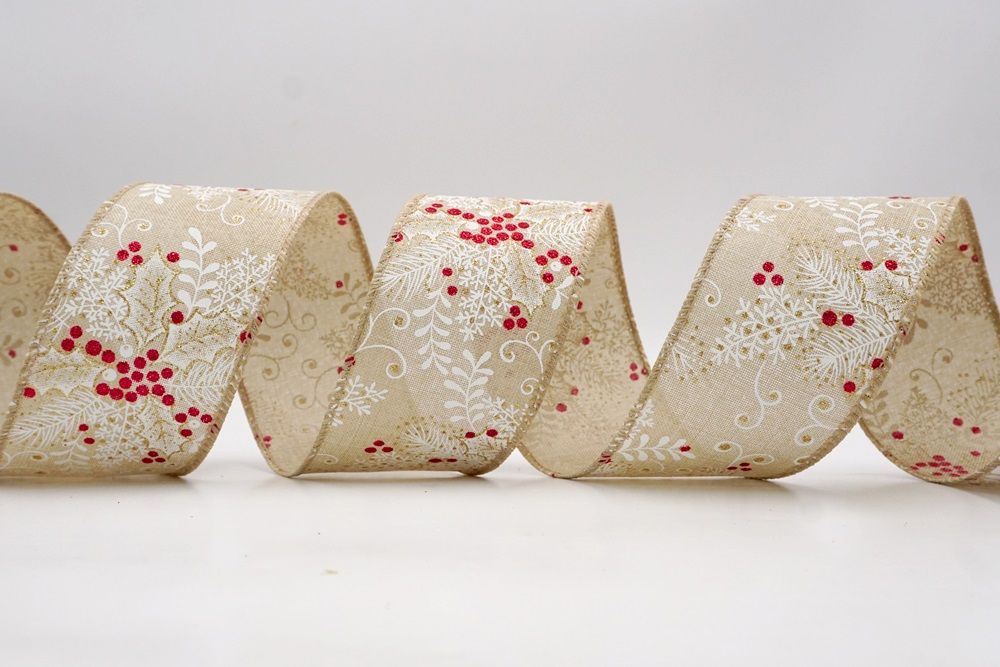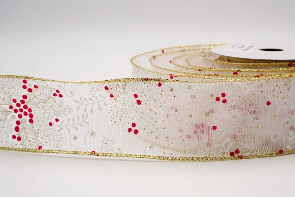 Ruban en fil de houx de Noël avec feuilles et baies_KF9630.KF9631
