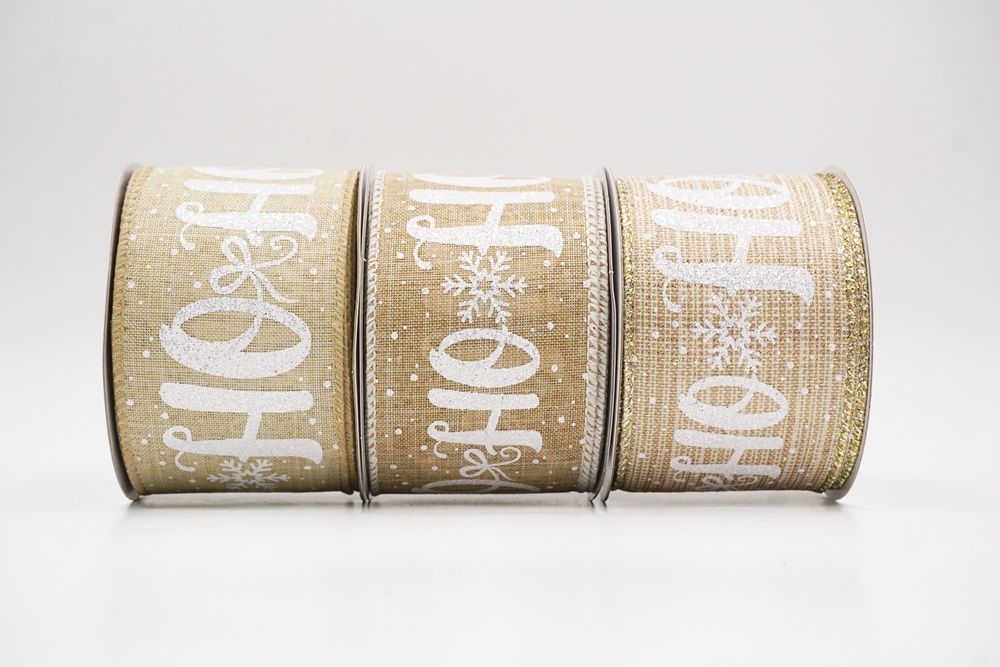 Décoré avec un texte en gras "HO HO HO" et des motifs de flocons de neige nets, ce ruban apporte une énergie amusante et joyeuse aux créations saisonnières. Disponible en six teintes confortables : marron clair, beige, gris, rouge, marron clair-blanc et rouge-blanc, cette collection convient aux designs de vacances traditionnels et contemporains. Le mélange de toile de jute synthétique et de tissu à tissage simple ajoute une touche artisanale charmante.