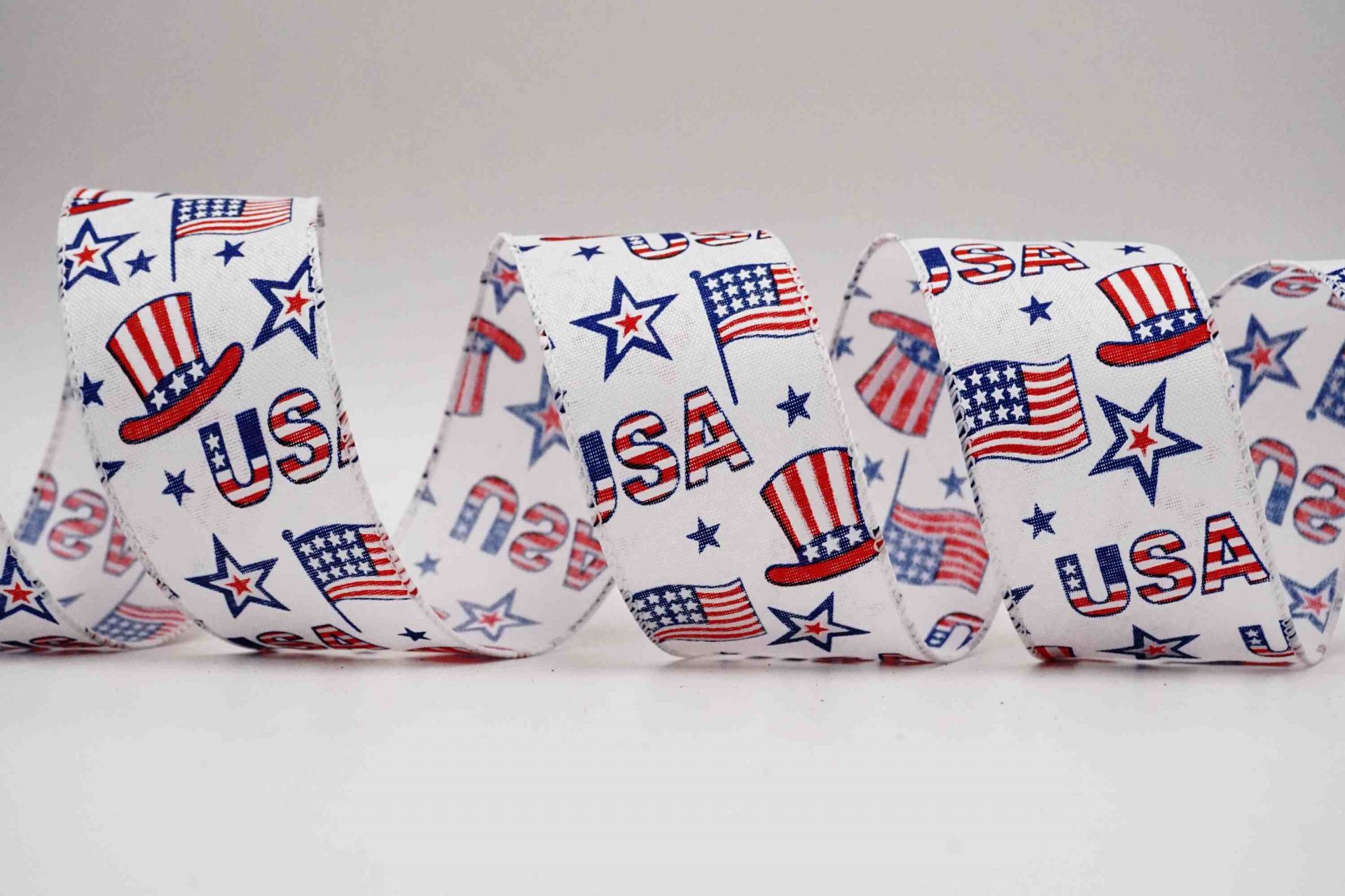Ce ruban du Quatrième de Juillet présente une caractéristique de drapeaux américains volants et vifs. Les motifs ne sont pas inanimés ; au contraire, ils sont bien présentés avec des couleurs vives et ont l'air vivants. Les encres rouges, bleues et blanches se démarquent des trois couleurs de fond, naturel, kaki et ivoire.
