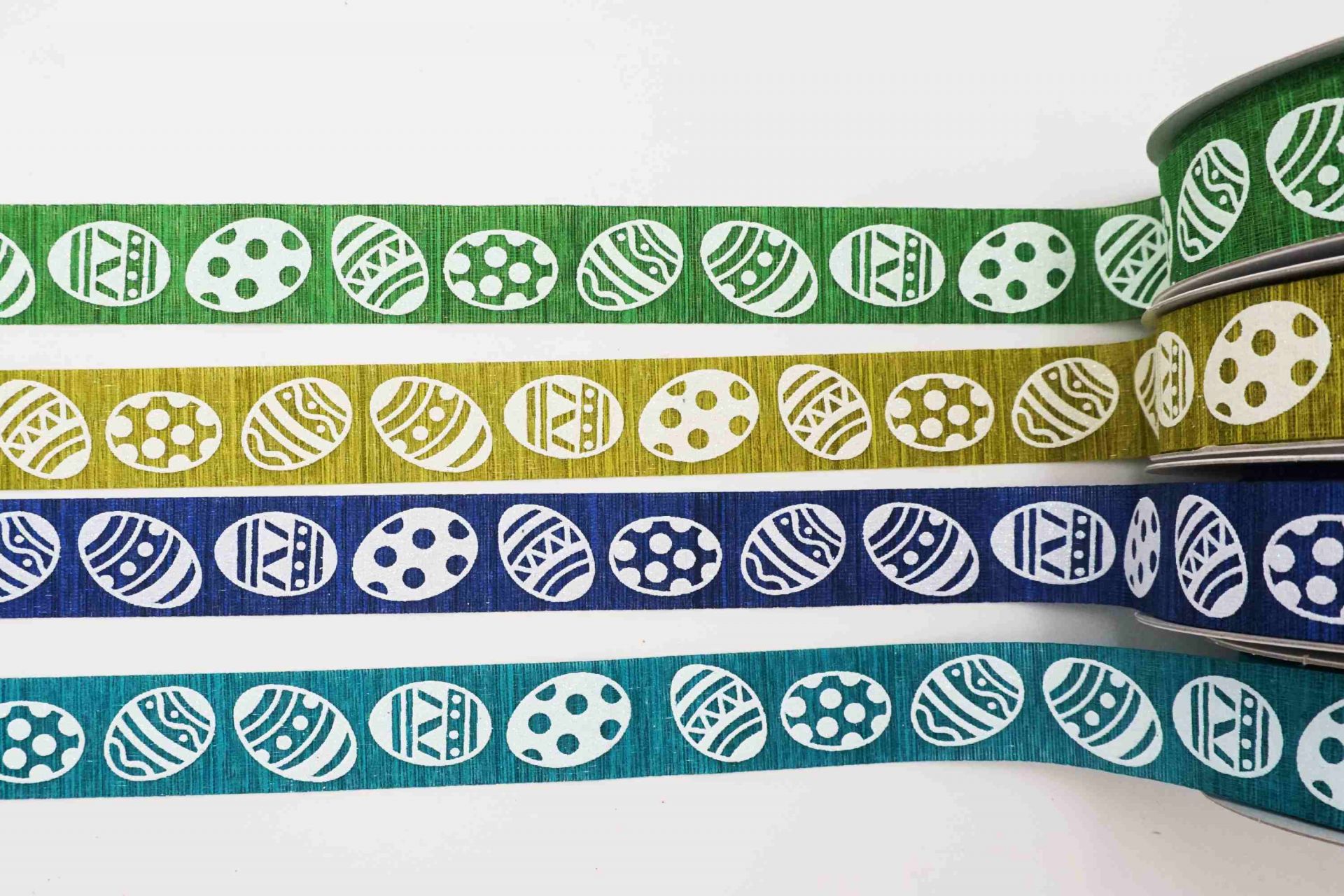 Six types d'œufs de Pâques pailletés imprimés sur gros-grain