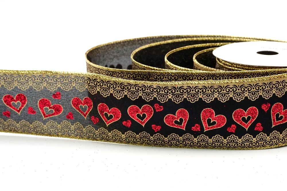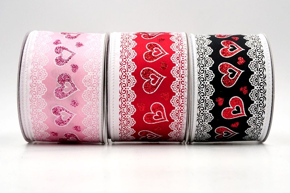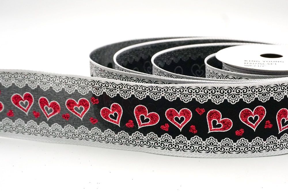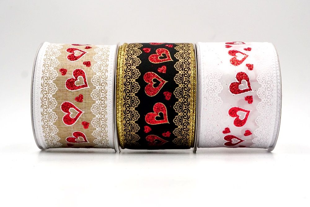 Célébrez la saison de l'amour avec la collection de rubans en fil Valentine Heart. Cette sélection charmante propose 9 couleurs captivantes, du blanc crème classique et du rose clair au rouge audacieux orné de cœurs dorés et blancs, et même une touche d'élégance avec des rubans noirs accentués de cœurs dorés et blancs. Chaque option de couleur est disponible en deux largeurs, 1 ½ pouces (38 mm) et 2 ½ pouces (68 mm), répondant à divers besoins décoratifs.