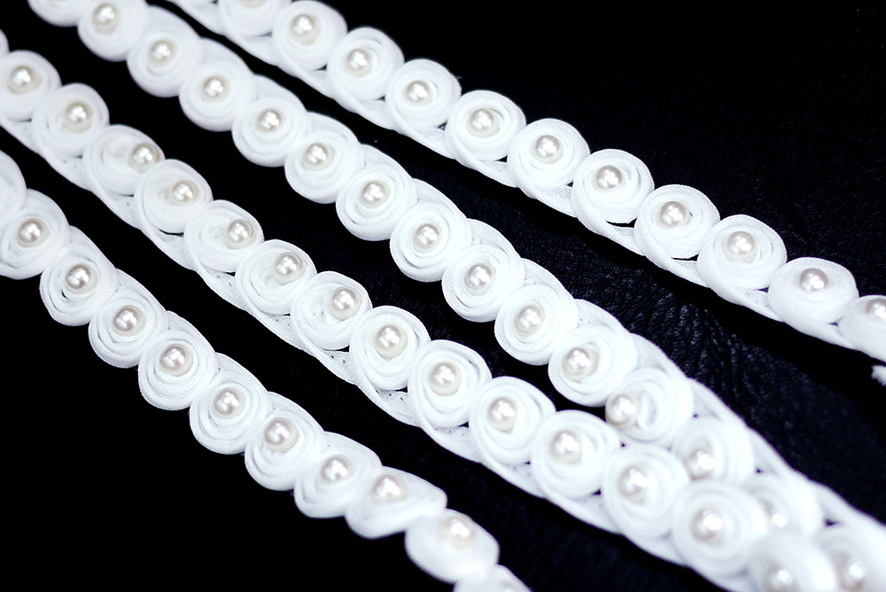 पर्ल बीड्स के साथ रोसेट ट्रिमिंग