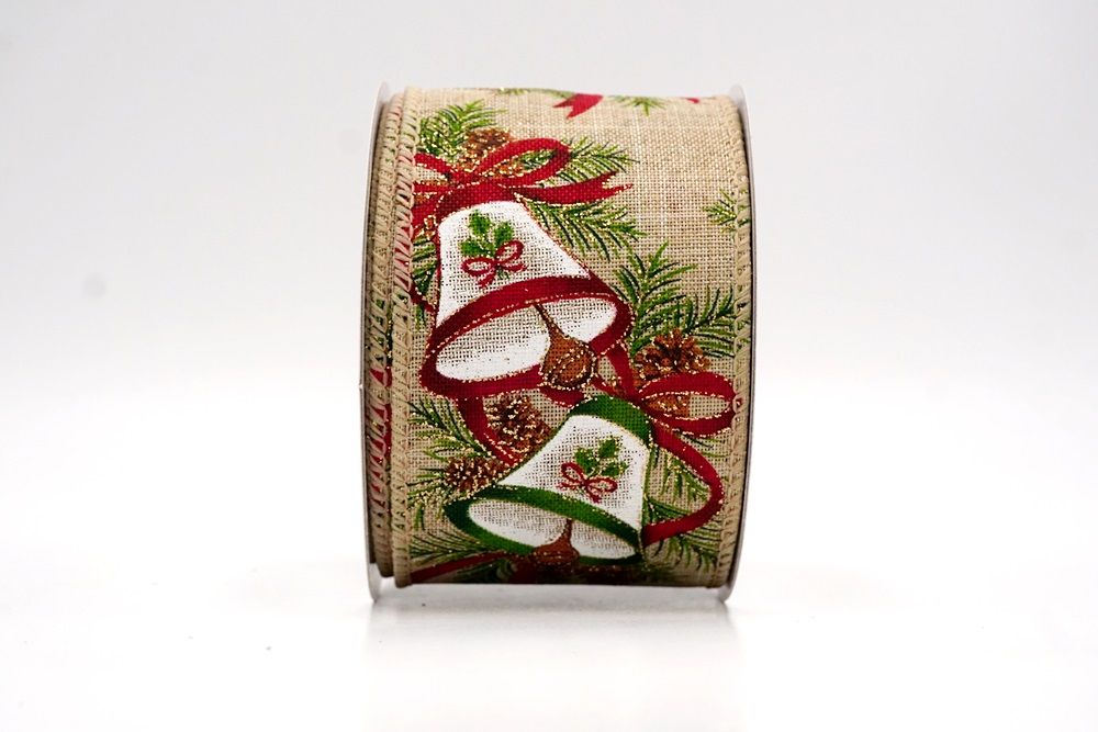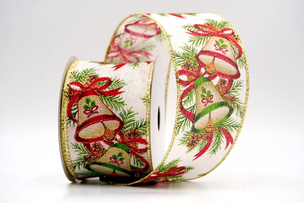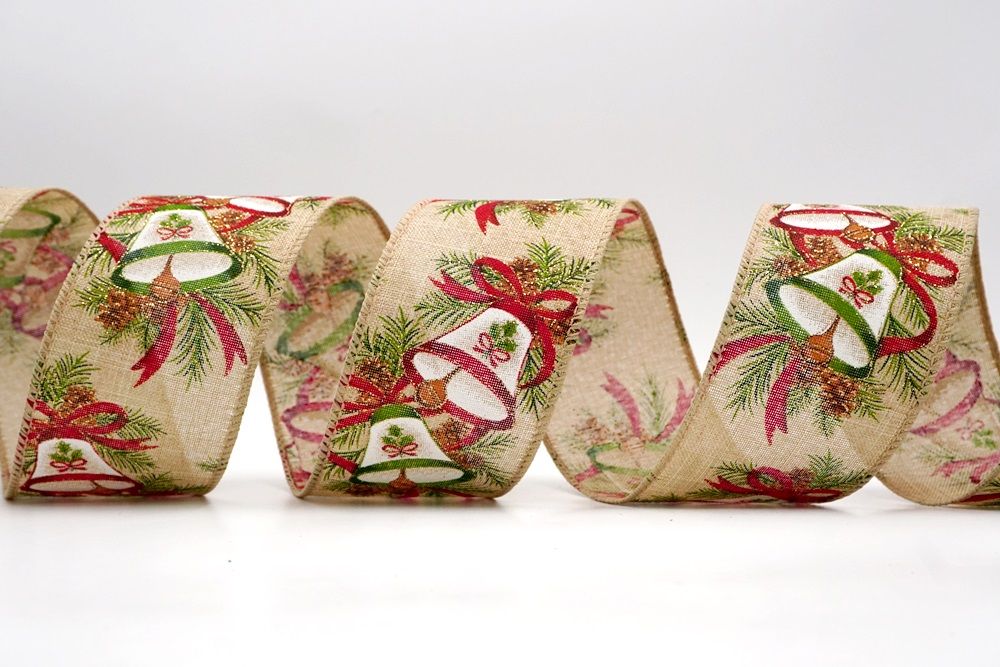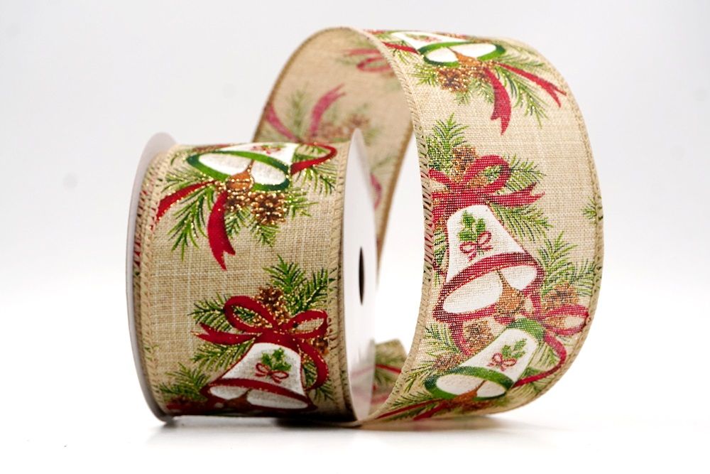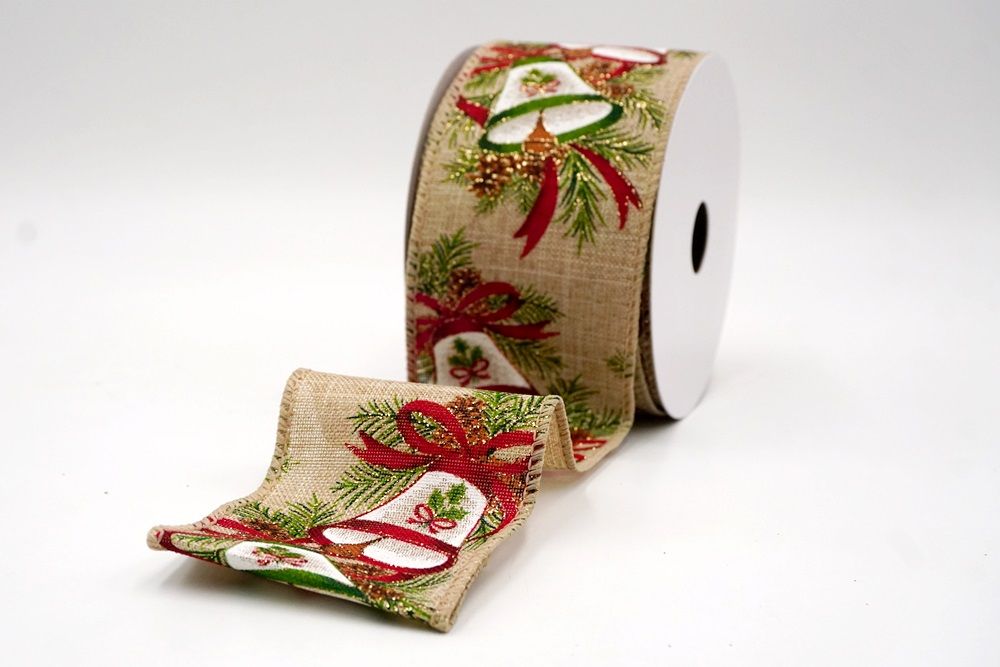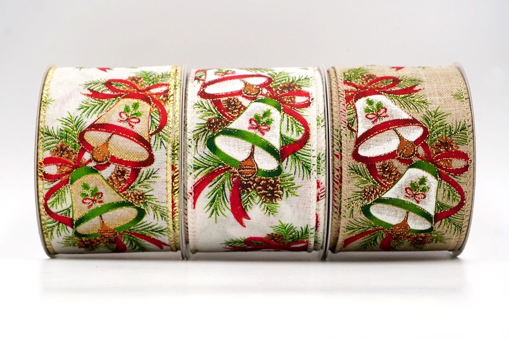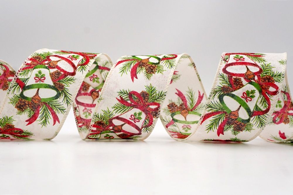 क्रिसमस बेल और पाइनकोन वायर्ड रिबन