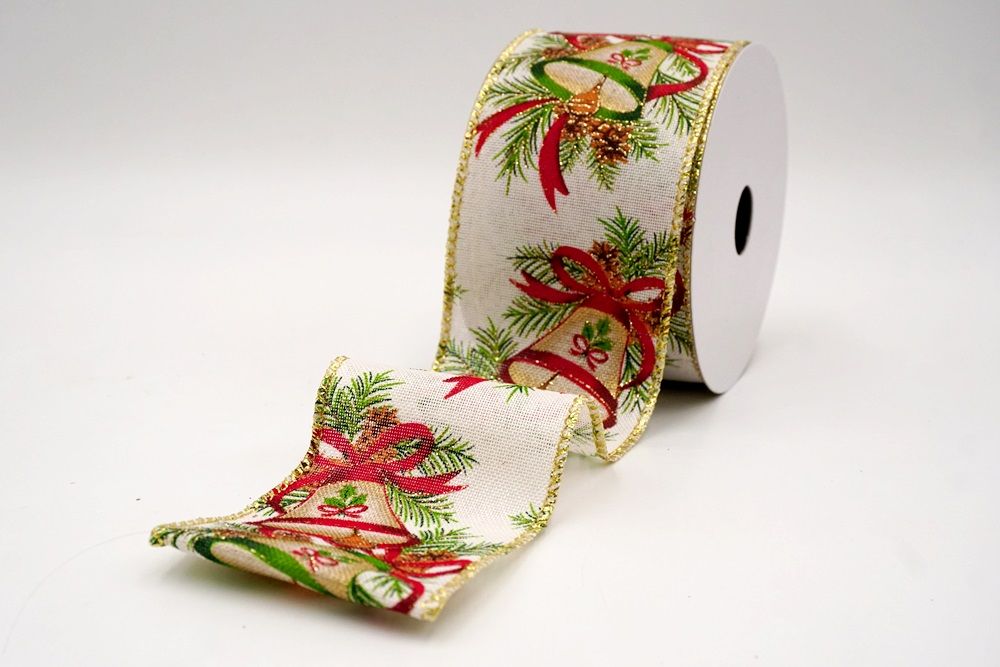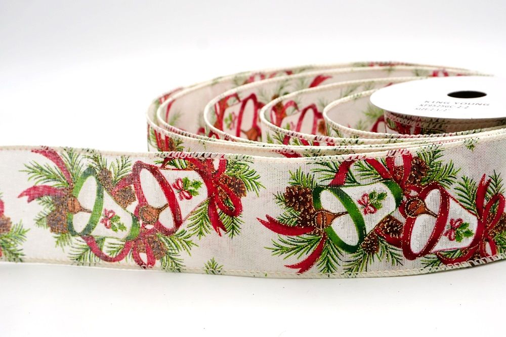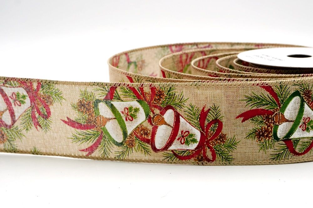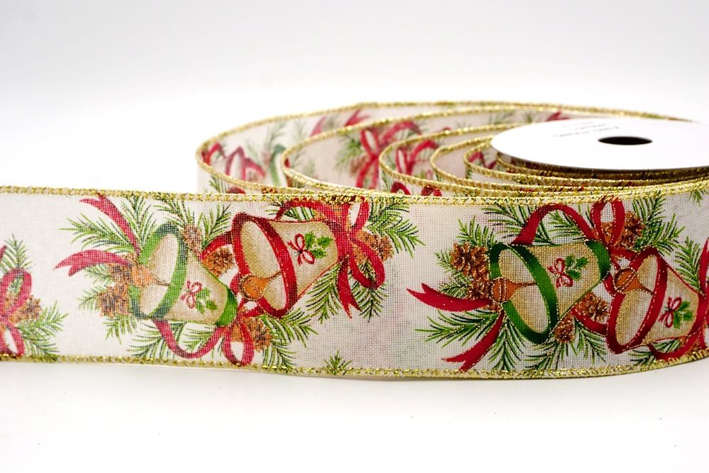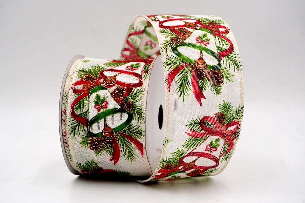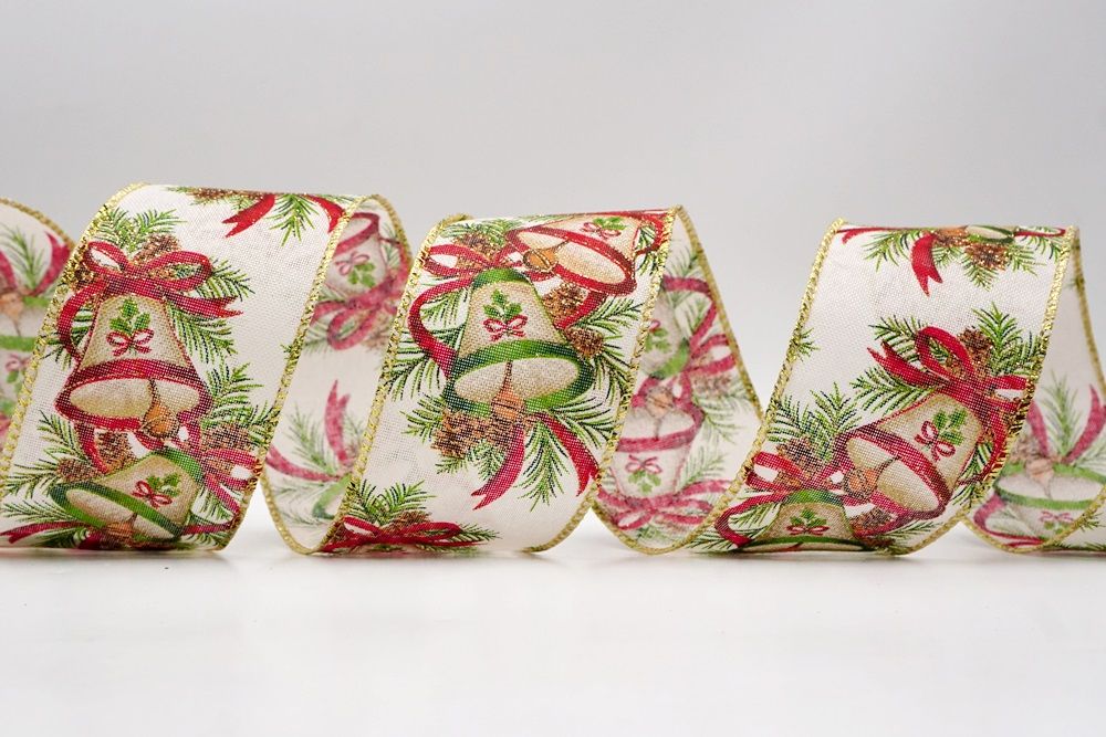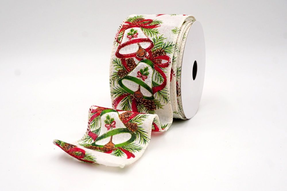 क्रिसमस बेल और पाइनकोन वायर्ड रिबन_KF9524.KF9525