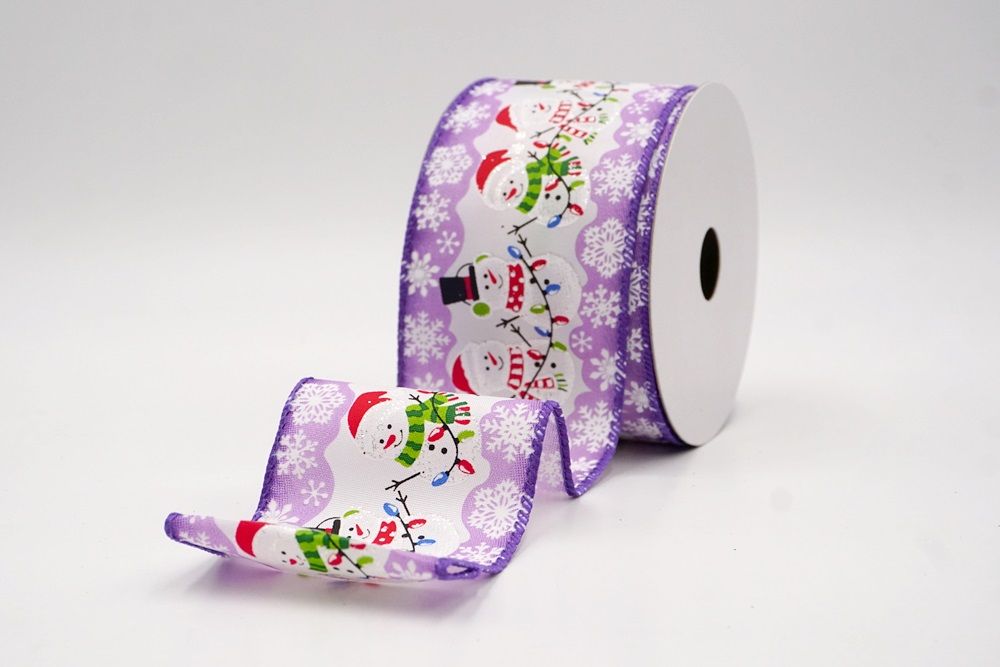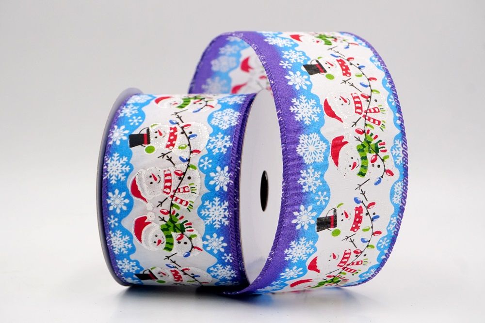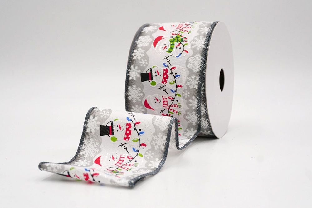 उत्सव स्नोमैन और क्रिसमस लाइट्स वायर्ड रिबन_KF9754