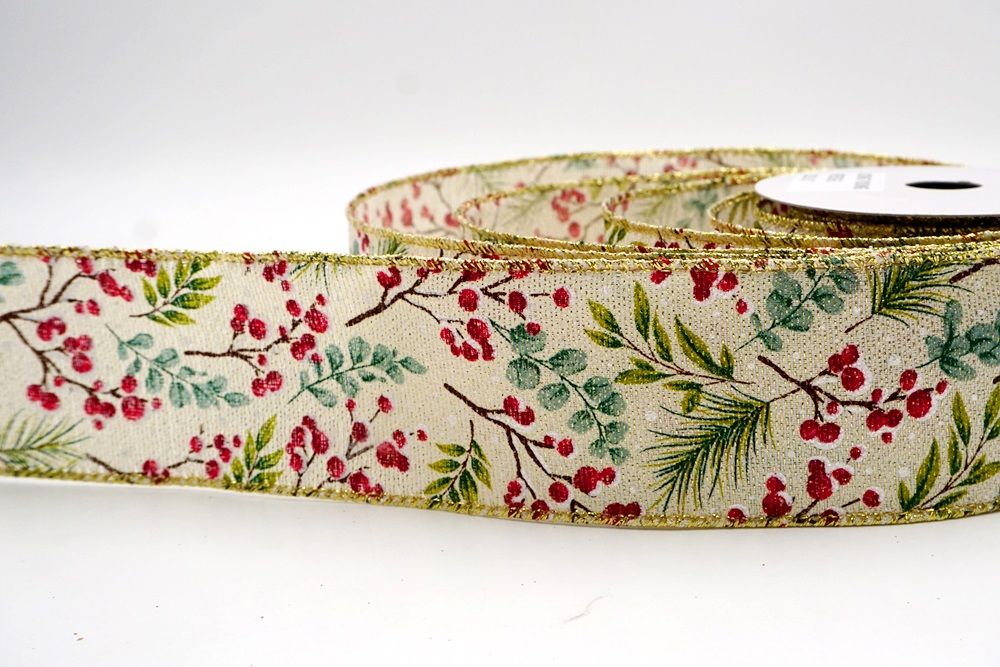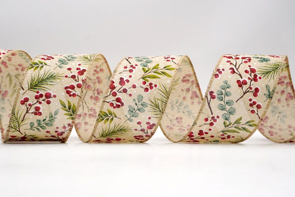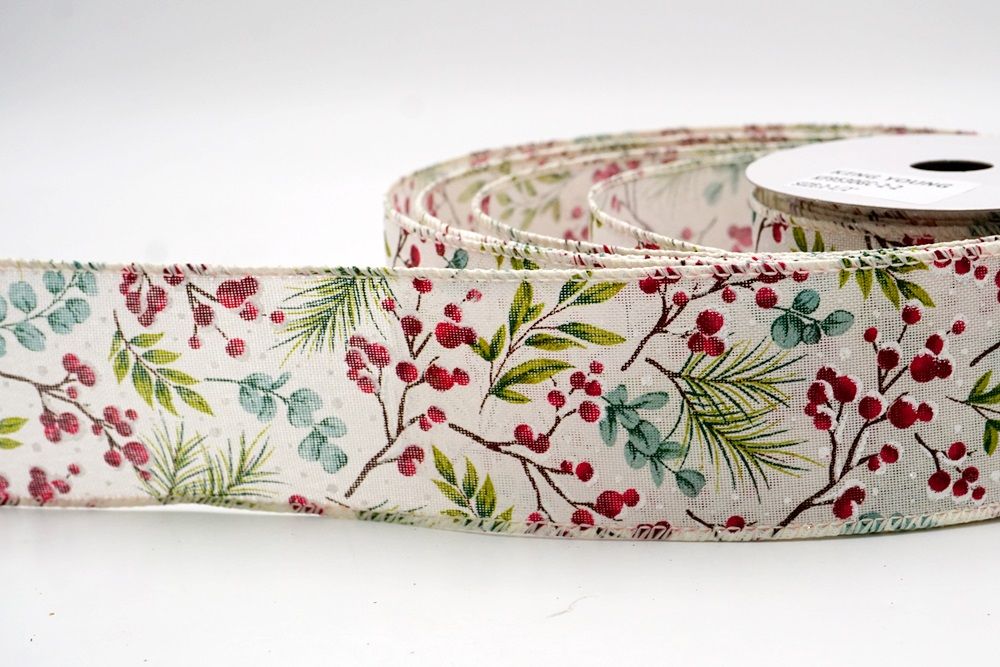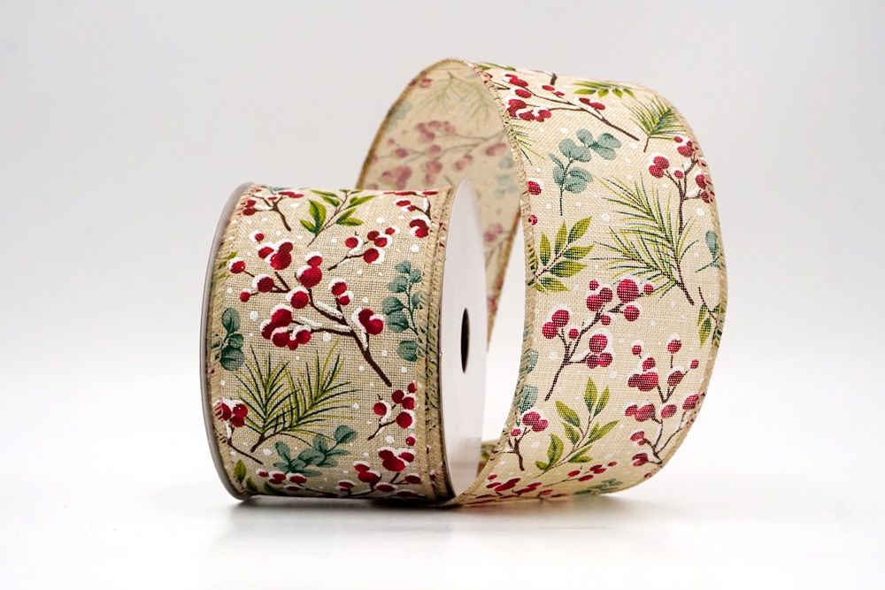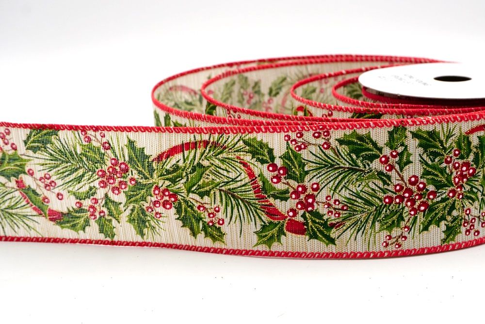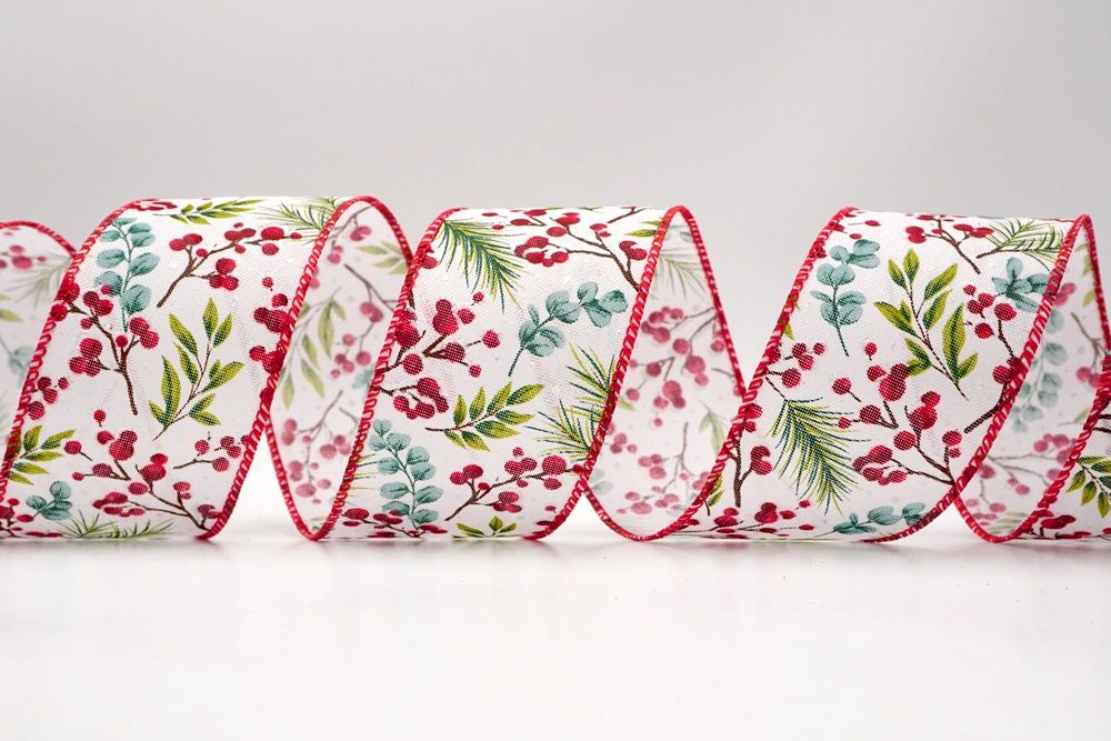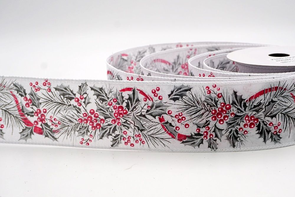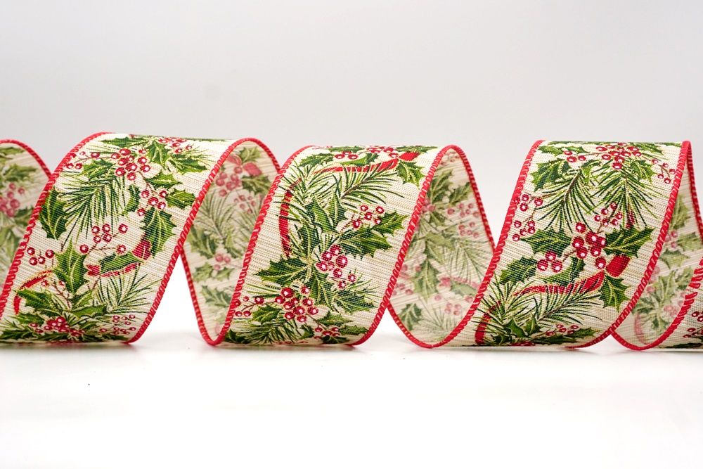 छुट्टी बेरी और हरी पत्तियाँ वायर्ड रिबन आपके घर के हर कोने में छुट्टी का माहौल फैलाने के लिए एक आवश्यक वस्तु है।