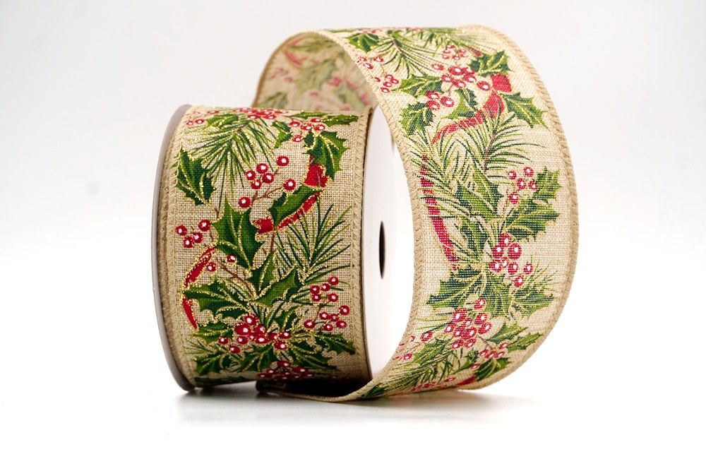 यह शानदार रिबन सफेद और हल्के भूरे रंग के आधार में आता है, जिसे पाइनकोन्स, होली पत्तियों और चमकीले लाल धनुषों से खूबसूरती से सजाया गया है। इसका समृद्ध डिज़ाइन पारंपरिक और सुरुचिपूर्ण छुट्टी शैलियों के लिए एक उत्सव का मुख्य आकर्षण बनाता है।