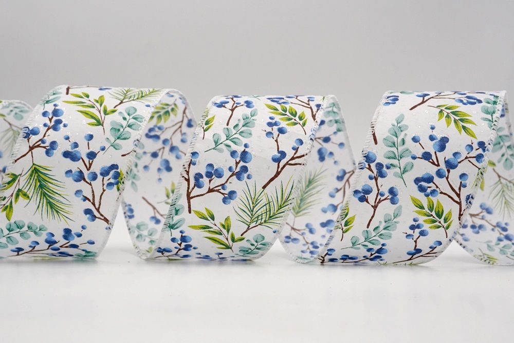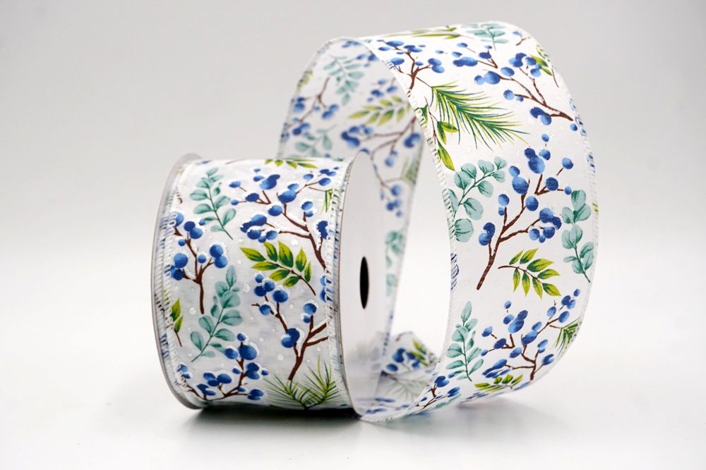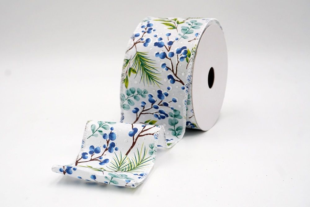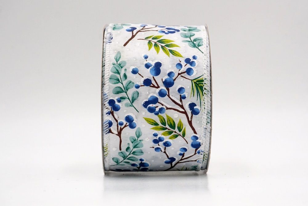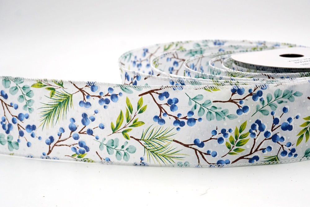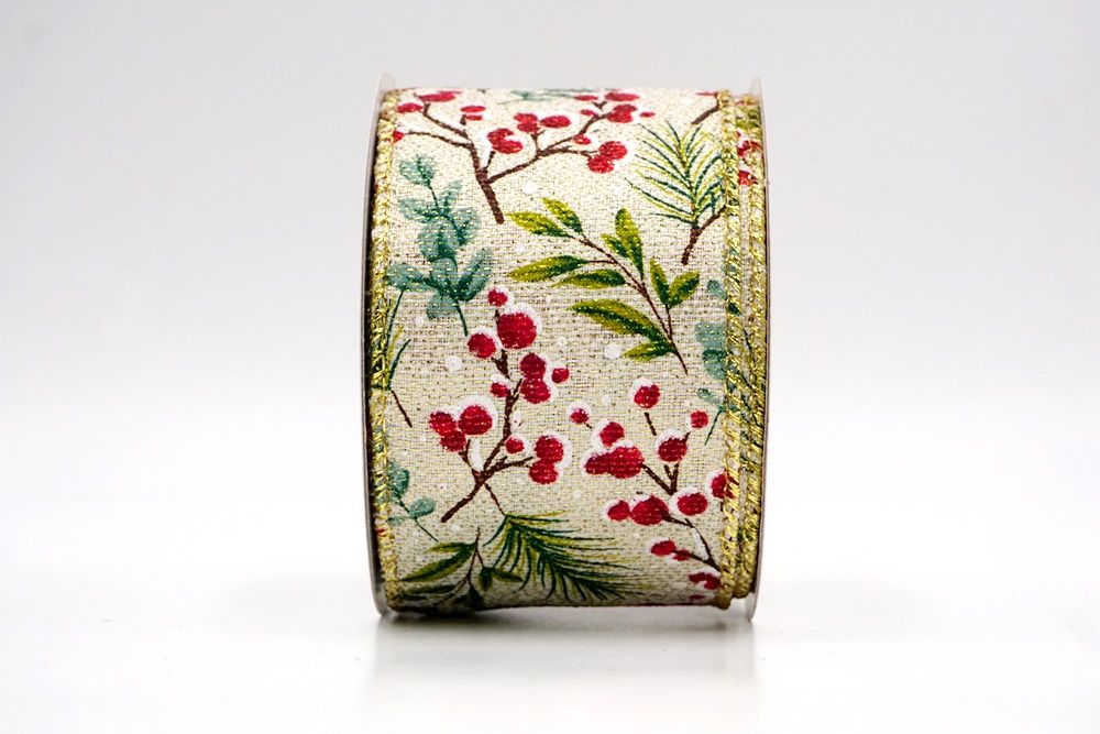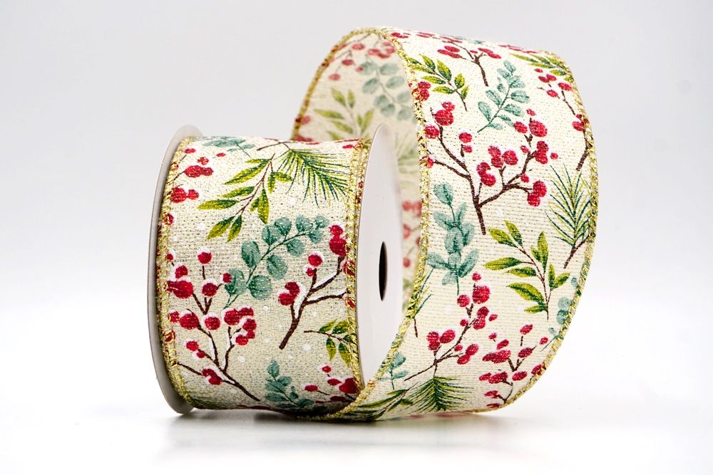 छुट्टी बेरी और हरी पत्तियाँ वायर्ड रिबन