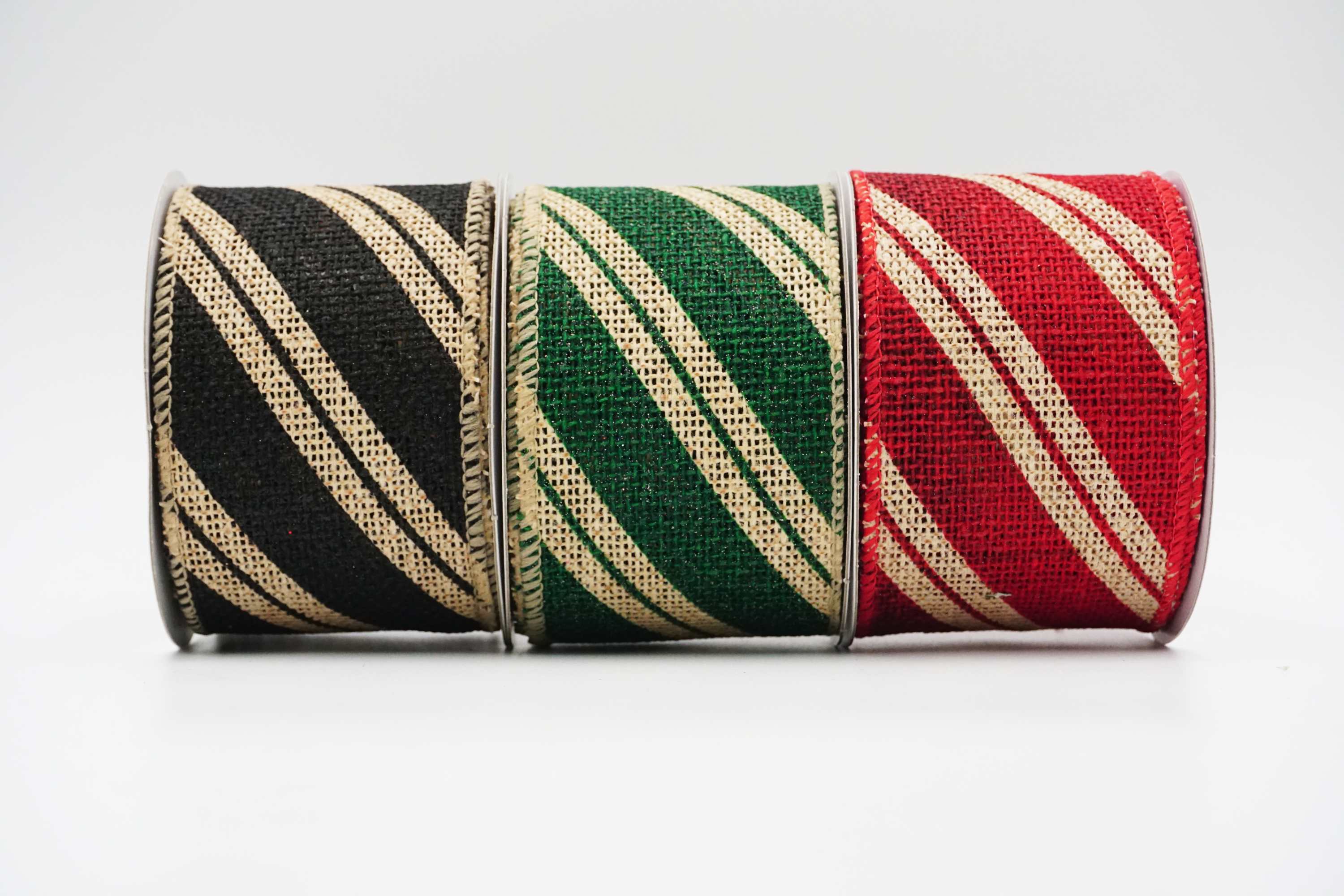 रेट्रो स्लैंट स्ट्राइप्स वायर्ड रिबन_KF6369GR-13 और KF6370GN-7