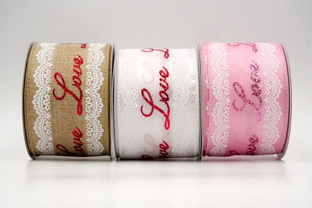 लव स्क्रिप्ट और लेस डिज़ाइन वायर्ड रिबन