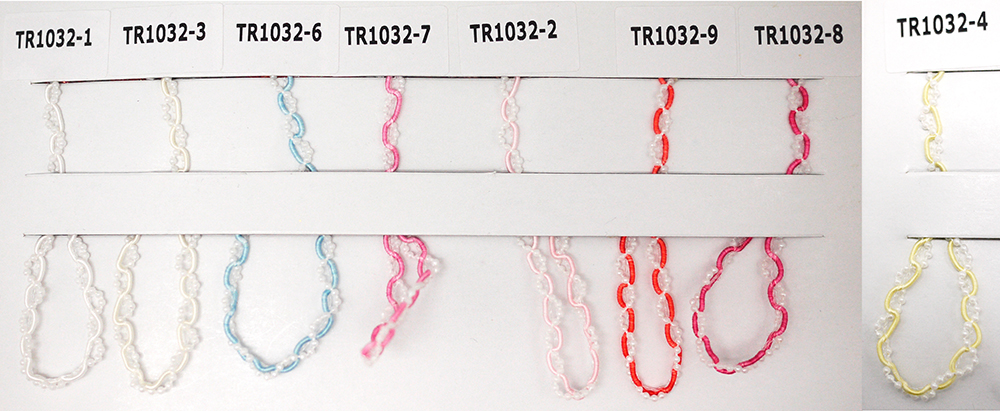 यह 3 मिमी का तार लंबाई में "S" जैसे लहरदार पैटर्न के साथ आता है। यह 3 रंगों में उपलब्ध है और प्रत्येक विभिन्न सामग्रियों से बना है। पीला पॉलिएस्टर से बना है, काला और सफेद कपास से है, और गुलाबी इरिडेसेंट धातु के धागे से बना है। यह उपहार बैग के लिए हैंडल, स्क्रैपबुकिंग, शिल्प परियोजनाओं, सिलाई, पुष्प व्यवस्था, पार्टी फेवर और अधिक के लिए आदर्श है।