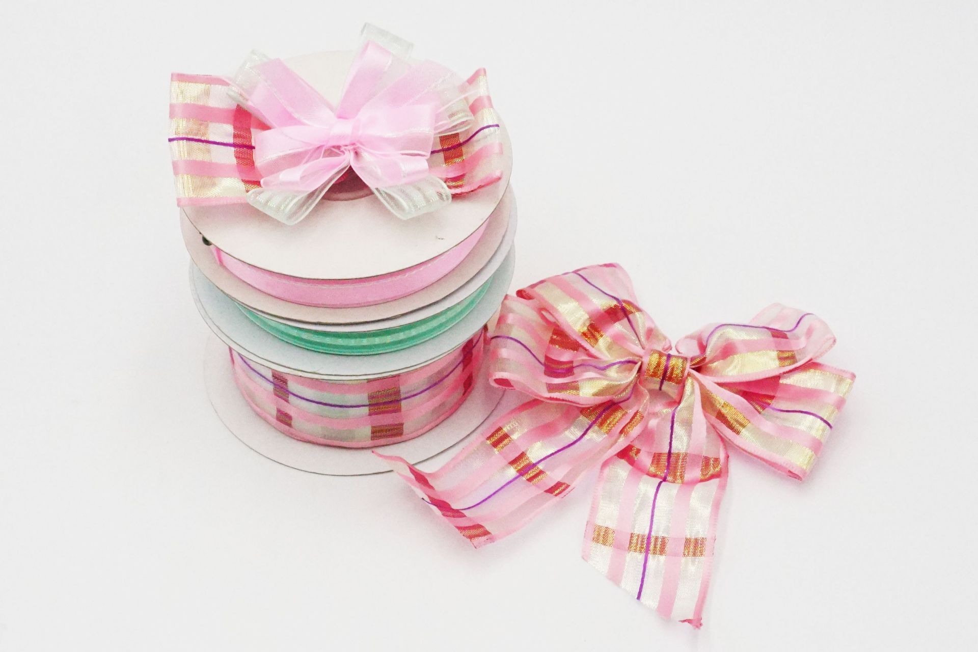 Nézd meg ezeket a gyönyörű, fémes kockás rózsaszín masnikat. Tökéletesek az ünnepi kézműves munkákhoz, esküvőkhöz, ajándékokhoz, varráshoz, scrapbookhoz, vagy hajmasnikhoz. Nagyszerű kiegészítők bármilyen projekthez, amit csak elképzeltél.