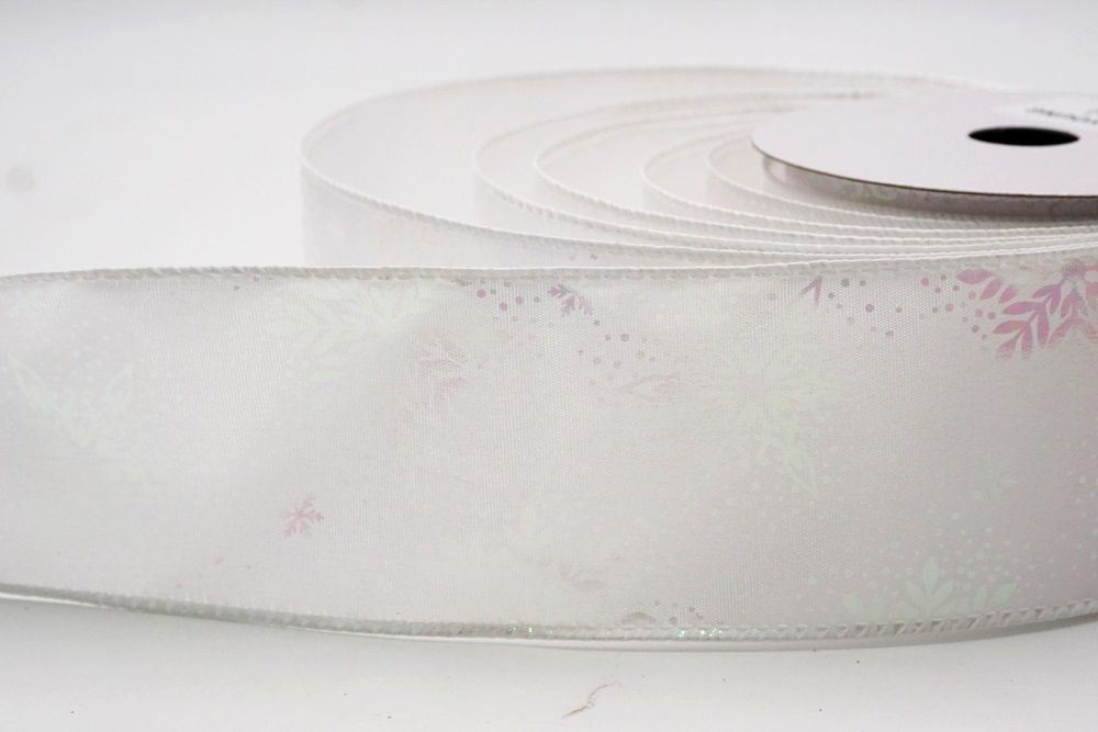 Ez az áttetsző szalag finom hópelyhes díszítéssel rendelkezik, fehér és piros színváltozatokban elérhető. Könnyű anyaga és lágy csillogása sokoldalú választássá teszi az visszafogott, mégis ünnepi dizájnokhoz.