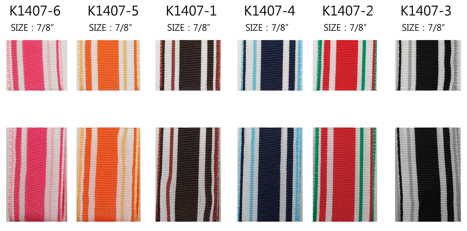 Ez a sorozat egy 7/8 hüvelykes szőtt szalag, amely különböző színű csíkokkal rendelkezik és visszafelé is használható. Jelenleg 6 színkombinációban elérhető: barna, piros/zöld, fekete, tengerészkék, narancs és élénk rózsaszín. Egyedi színek kérésre elérhetők. A széle drót nélkül van. Ez a szalag nagyszerű ajándékcsomagoláshoz, kézműves projektekhez és még sok máshoz.
