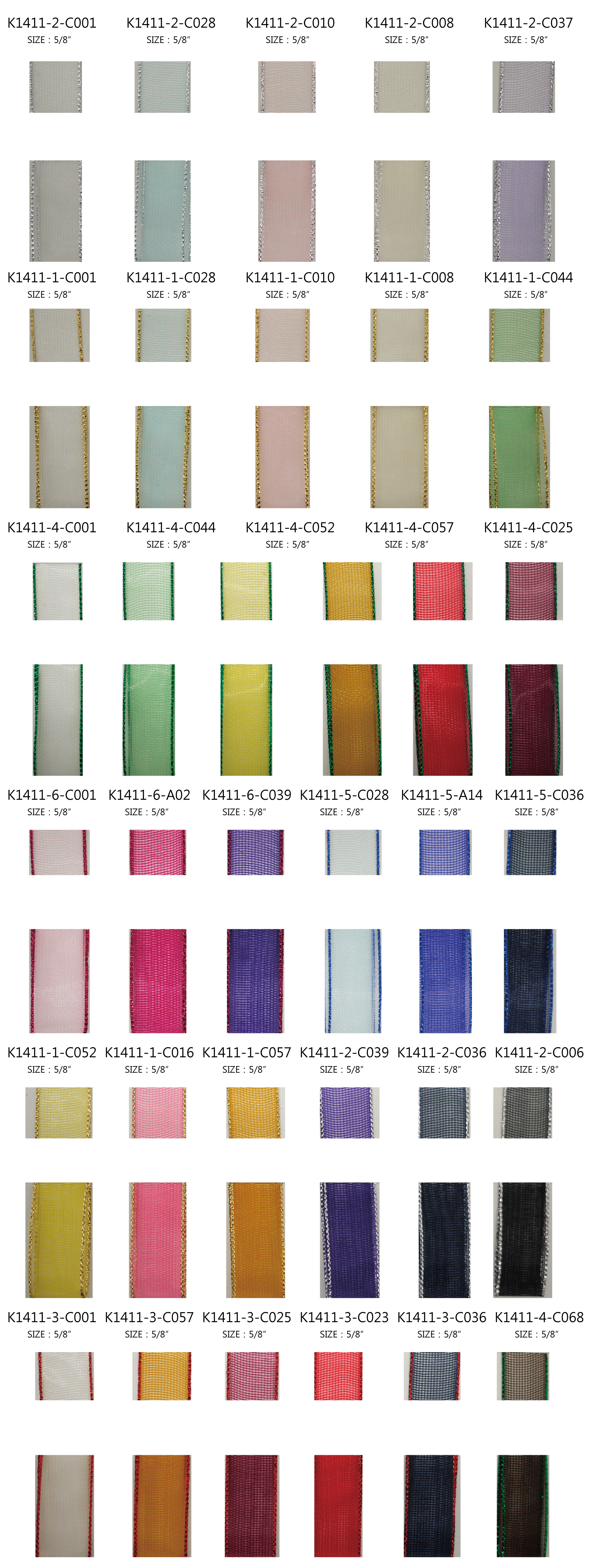 Ez a sorozat egy aranyos 5/8 hüvelykes szőtt hálós szalag, amelynek fémes széle van. A fémes szegély arany, ezüst, piros, smaragd, királyi kék és fukszia színekben kapható. Bármilyen színt meg tudunk festeni a nylon hálós alaphoz. Egyedi színek vagy pantone színek is elfogadhatók. A széle drót nélkül van. Ez a szalag nagyszerű ajándékcsomagoláshoz, kézműves projektekhez és mindenféle dekorációhoz.