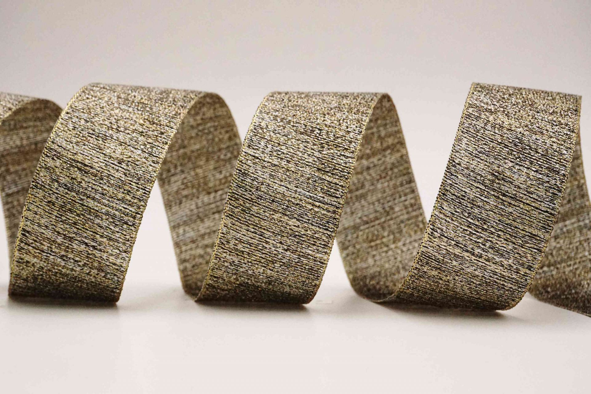 A 1,5 hüvelyk széles fém szalag arany és ezüst fonalak vízszintes csíkjaival és egy másik egyszínű színnel rendelkezik, hogy luxus megjelenést biztosítson. Ez a fém szalag kétoldalas és éppen megfelelő szélességű ajándékcsomagoláshoz és kézműves projektekhez.