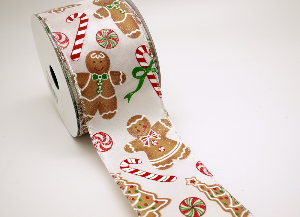 A fényes fehér gyémánt selyemszövet ínycsiklandó, szórakoztató mézeskalács ember és cukorpálca mintával rendelkezik. Egy erősen csillogó ezüst csillámot használnak a dizájn kiemelésére. A szalag széle vágva van és irizáló cérnával varrva, valamint drótot tartalmaz, amelyet könnyedén hajlíthatsz és formázhatsz. Egy színben és minden méretben elérhető. A szórakoztató cukrászati dizájn ideálissá teszi ezt a szalagot karácsonyi díszekhez, ajándékcsomagokhoz, masnikhoz, koszorúkhoz és még sok máshoz!