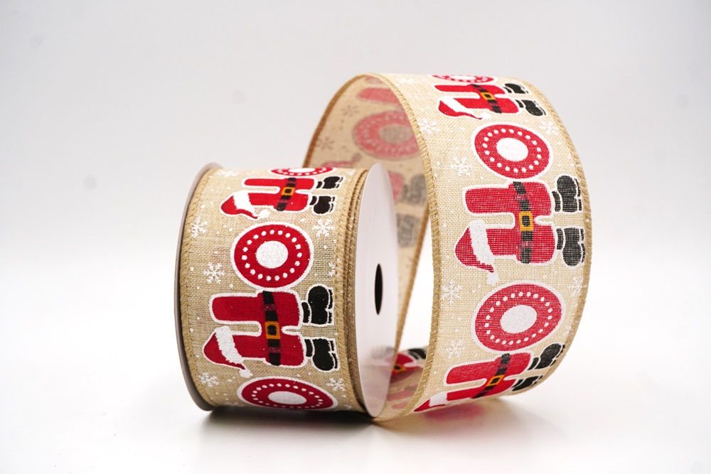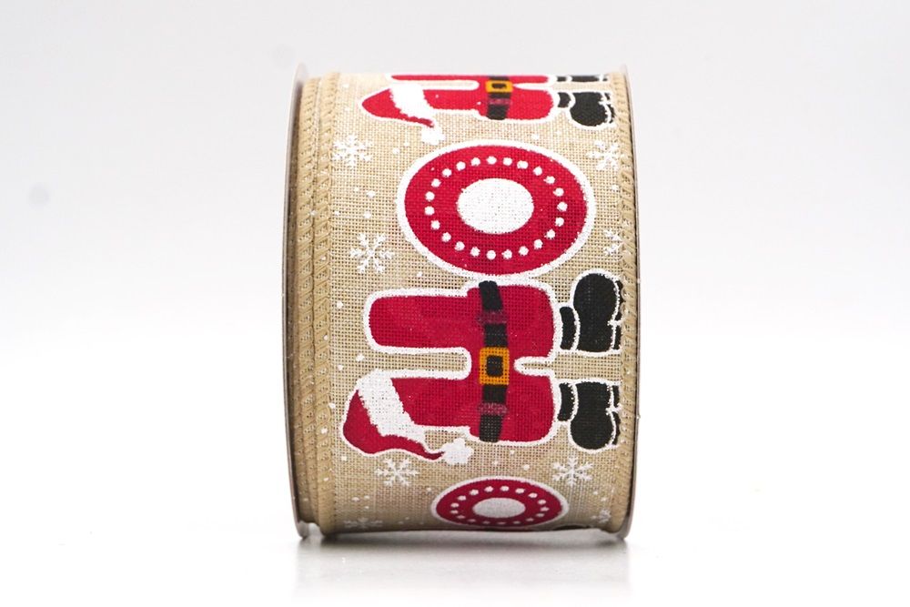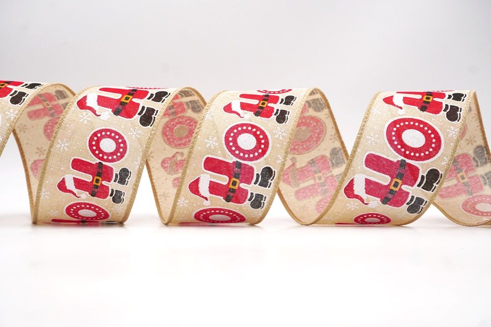 Caratterizzato da stampe dettagliate del volto di Babbo Natale, questo nastro è disponibile in tonalità marrone chiaro, bianco, crema e rosso. Realizzato con tessuti twill e finta juta, combina immagini classiche delle festività con una qualità durevole.