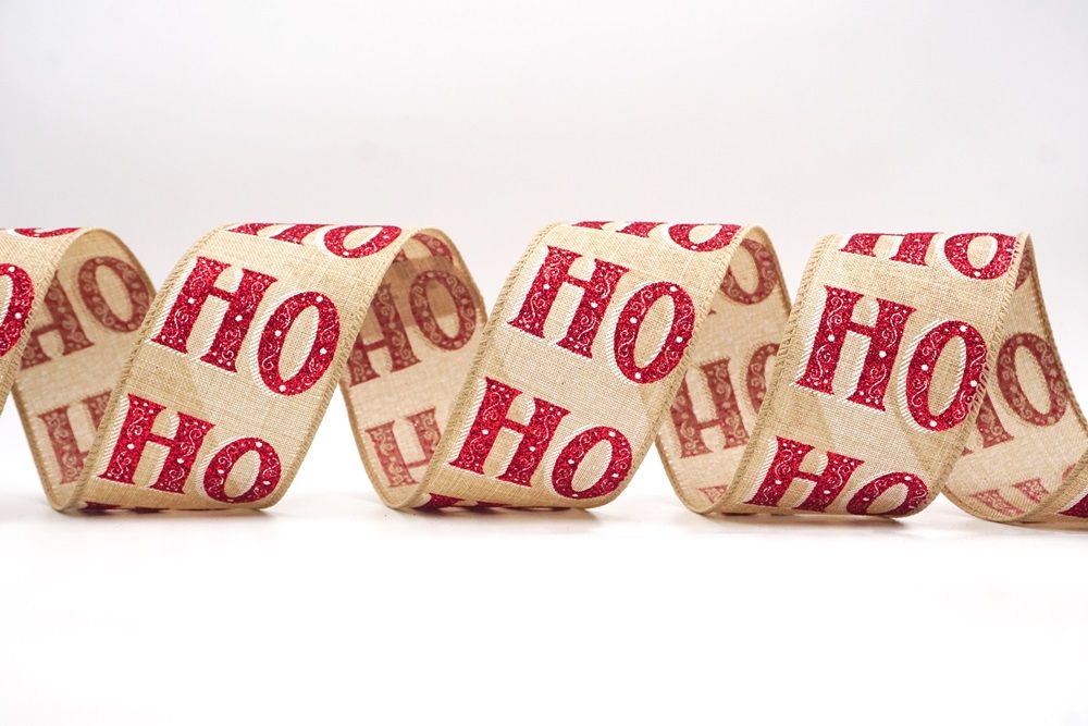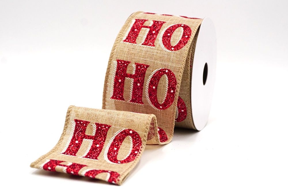 Caratterizzato da una scritta “HO HO HO” in grassetto con glitter scintillante, questo nastro è disponibile in varianti di marrone chiaro, beige, bianco, rosso e nero. La base in finta juta aggiunge una texture rustica ma festosa che si distingue in qualsiasi decorazione natalizia.