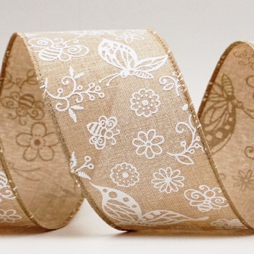 Questo nastro che presenta un motivo floreale e elementi naturali è realizzato con buoni tessuti di iuta sintetica. Può essere tagliato in tutte le dimensioni con fili contenuti sui bordi. Se stai realizzando il primo fiore con il nastro questa primavera, i fili ti aiuteranno mentre pieghi il nastro e cerchi di mantenere la forma.