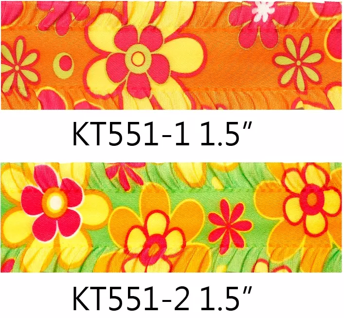 Diversi fiori dai colori appassionati sono stampati su nastro di raso di poliestere bianco tramite tecnica di trasferimento termico. Abbiamo esaltato la sensazione floreale creando arricciature sul bordo. Questo nastro è disponibile in due colori. Ottimo per composizioni floreali, confezioni regalo, progetti di artigianato e cucito.