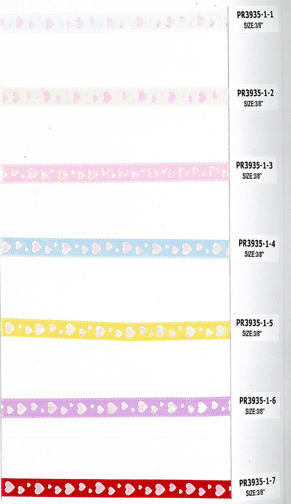 Questo nastro di stampa da 3/8 di pollice ha dei dolci cuoricini di diverse dimensioni impressi in un colore iridescente bianco su raso di poliestere a singola faccia. Puoi effettivamente sentire la stampa! Colori personalizzati o pantone possono essere realizzati su richiesta. Questo nastro di stampa è ottimo per confezioni regalo di San Valentino, giocattoli e progetti di artigianato.