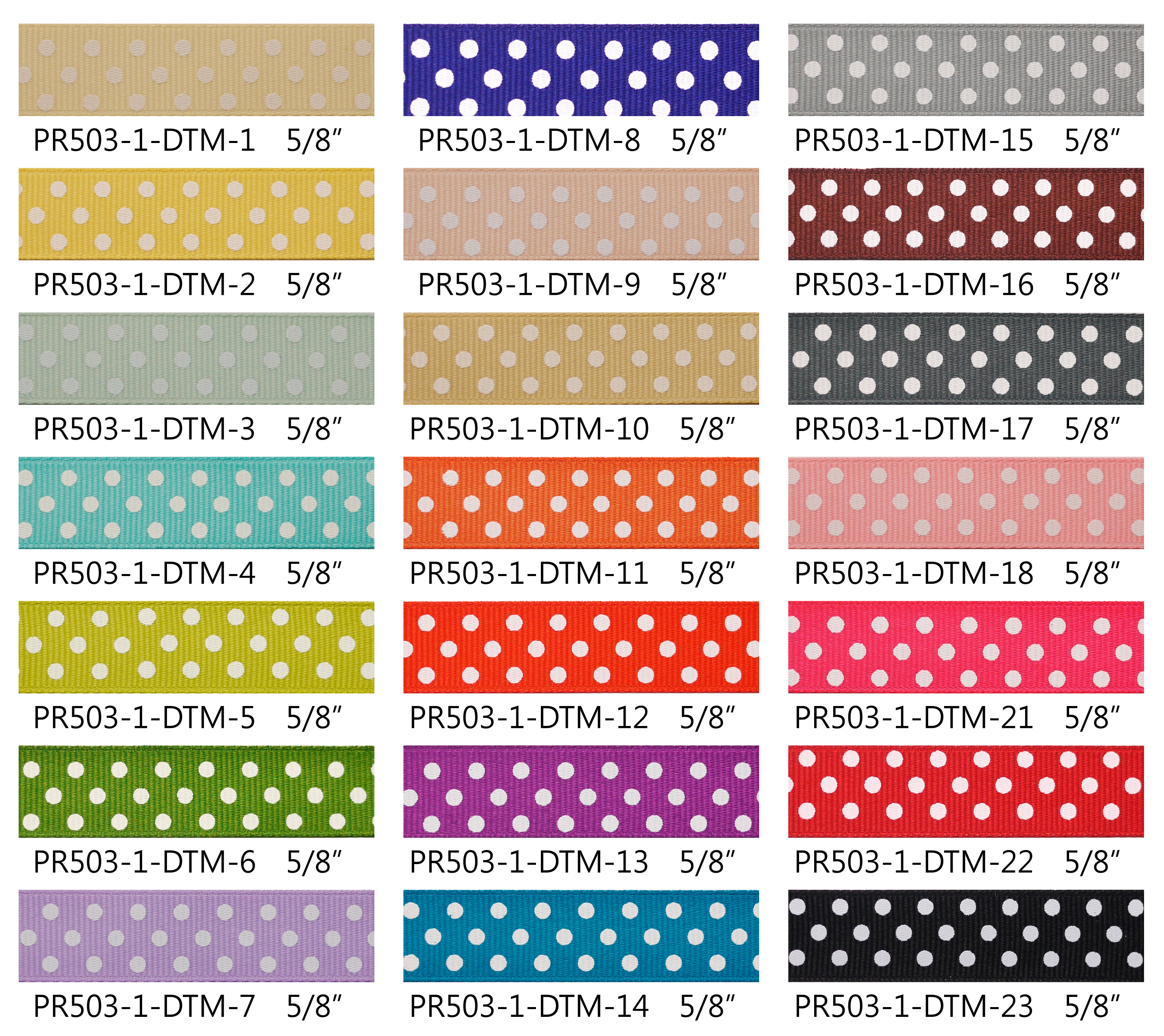 Il nastro di taffetà semplice largo 5/8 di pollice presenta una stampa a pois color avorio. Attualmente disponibile in 12 opzioni di colore. È possibile organizzare colori personalizzati o Pantone. Questo design semplice e carino è ottimo per confezionare regali, creare, abbellire, fare scrapbooking, fare fiocchi per capelli, bomboniere, cucito, decorazioni per la casa e tutte le decorazioni.