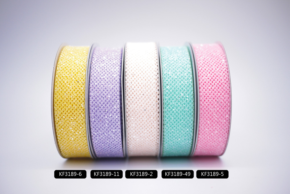 眩しいダイヤモンドの輝きが、メッシュエッジのリボンにあしらわれていて、見た目も良く、どんなスタイルにも合います。リボンの端はシンプルな仕上げ方法で、ワイヤーは使用していませんが、リボンの素材が硬めなので、形を作る際に固定されて落ちません。この商品は12色から選べます。