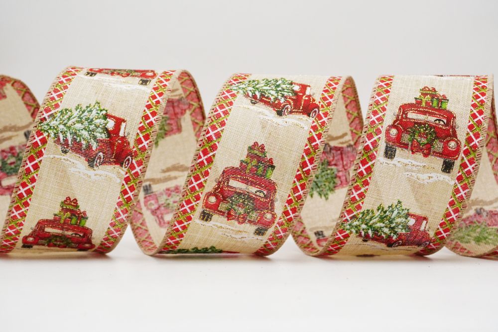 私たちはクラシックな赤いトラックのテーマを使用して、このクリスマスリボンをデザインしました。 赤いトラックの後ろにはクリスマスツリーが引かれ、屋根にはたくさんのギフトのデザインが積まれ、ナンバープレートにはリースが掛けられ、リボンの両側には赤/緑/白の格子模様が飾られ、休暇の雰囲気が演出されています。