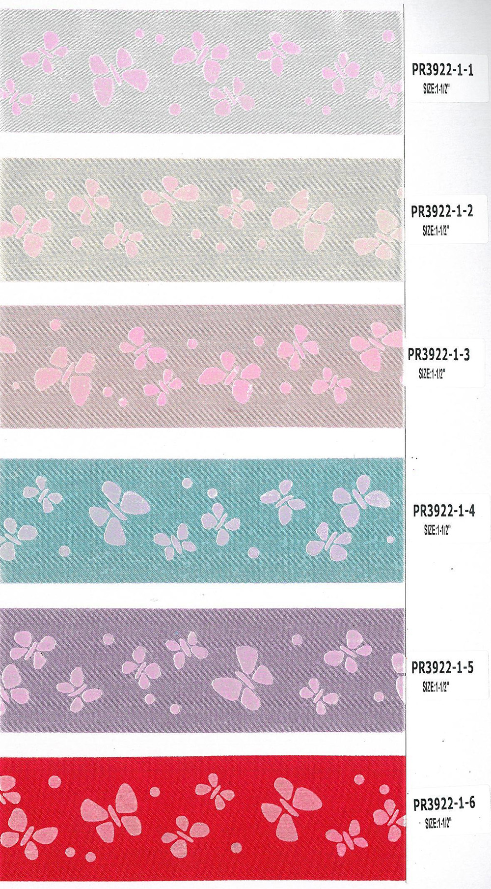 組織の密なサテンリボンに、生き生きとした蝶が舞うパターンが印刷されています。さまざまなベースカラーから選ぶことができます: 赤、淡いピンク、薄い紫、淡い青、薄い緑など(カスタムカラーも可能です!)。 このリボンには表と裏があります。 リボンの端は特殊な仕上げ技法を使用しており、リボンが引っ張られたり切り取られた後に生じる可能性のある損傷を効果的に防止します。 また、細い鉄線を加えたリボンと比べて、このリボンはより柔軟なラインを表現することができます。 本製品の特定仕様は1.5"であり、成分は100%ナイロンです。 誕生日パーティーの装飾、結婚式の装飾、バレンタインデーのイベントの装飾、イベント会場の装飾、室内の装飾、ギフトの包装、手作りのフラワーアレンジメント、玩具の装飾デザイン、衣服の副資材、アクセサリーのパーツに広く使用できます。 生産過程は環境保護規定に準拠しており、製品の品質は検査に合格しています!お気軽にお電話でお問い合わせいただくか、カラーチャートやサンプルをお求めください!