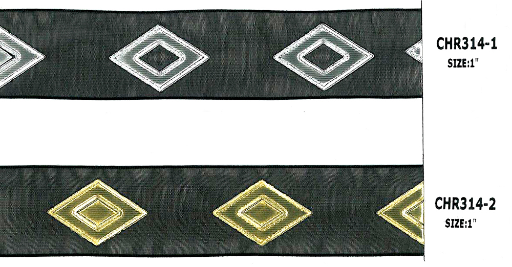 Hoc pannus simplex est unius digiti latitudine et habet laminas argenteas in forma diamantis super se. Haec laminas calidus in pannum imprimuntur. Margo panni non est filo ligatus. Hic pannus nunc in basi nigra cum laminis aureis vel argenteis disponitur. Colores consueti per rogatum fieri possunt. Optime aptus ad opera manuum, opera consuendi, scrappandi, involucrum doni et cetera.
