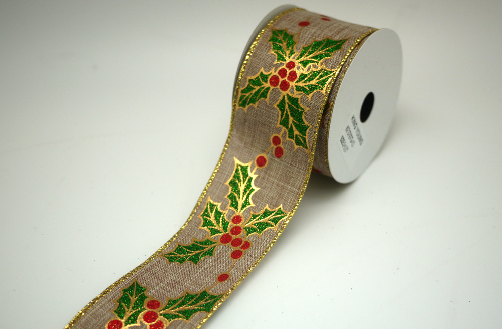 Faux burlap textilis cum rubris baccis et foliorum aquifolii emeraldinis designum