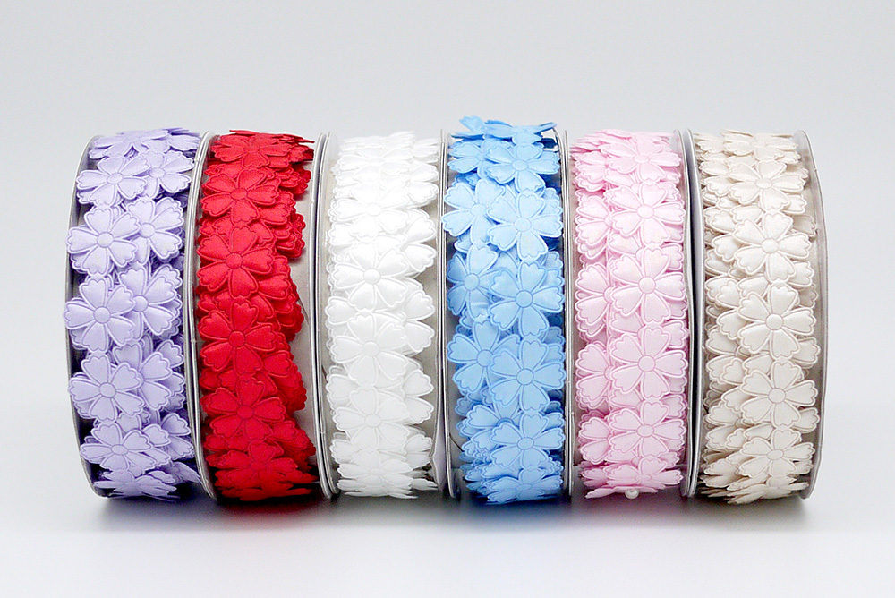 Schattig uitgesneden bloemenlint gemaakt van 100% polyester satijnen stof. De silhouet is gemaakt met behulp van een ultrasone machine met een bloemenpatroon gereedschap. Aangepaste kleuren kunnen op verzoek worden geproduceerd. Specifieke breedte van 7/8 inch. Dit lint is ideaal voor knutselprojecten en als naaibare toevoeging om uw decoraties te verfraaien.