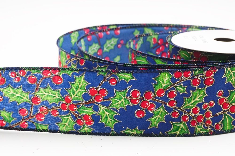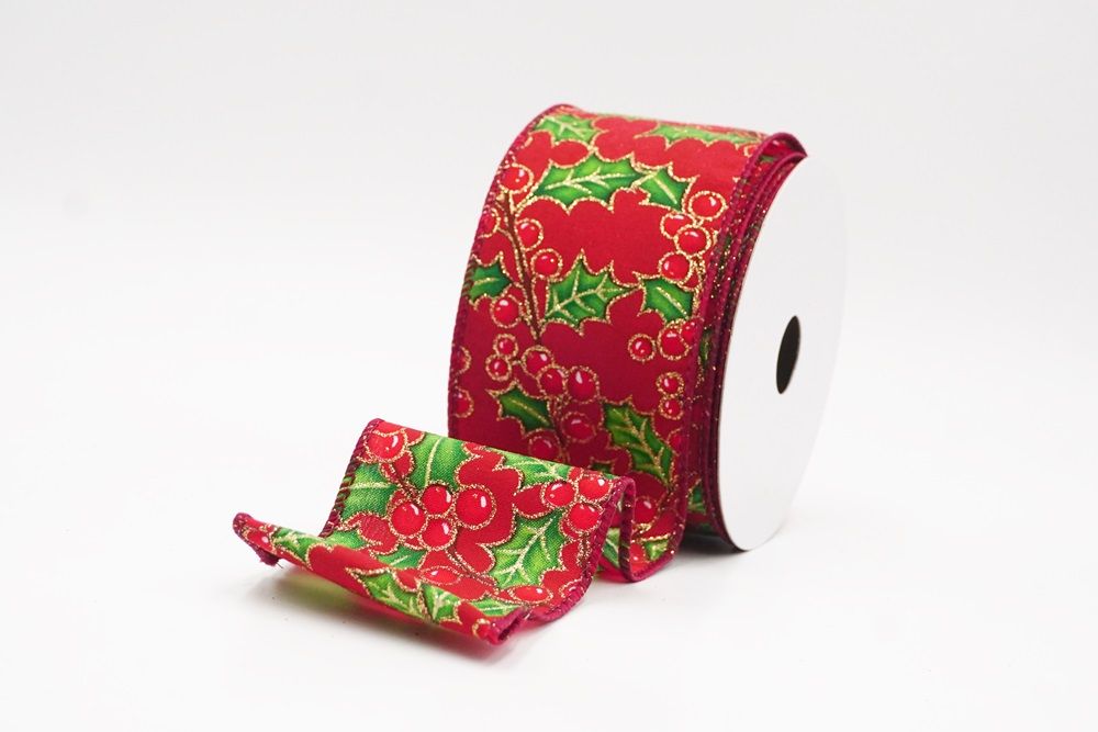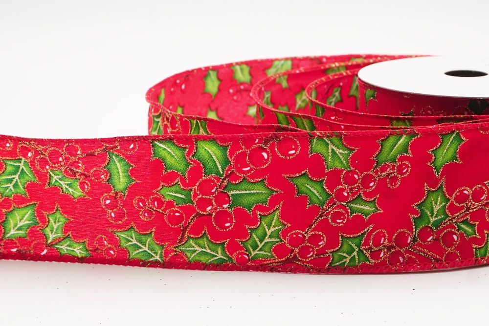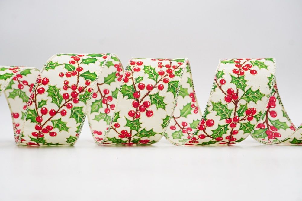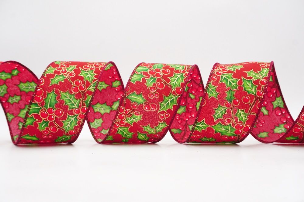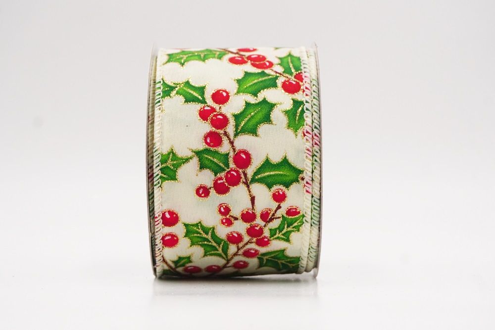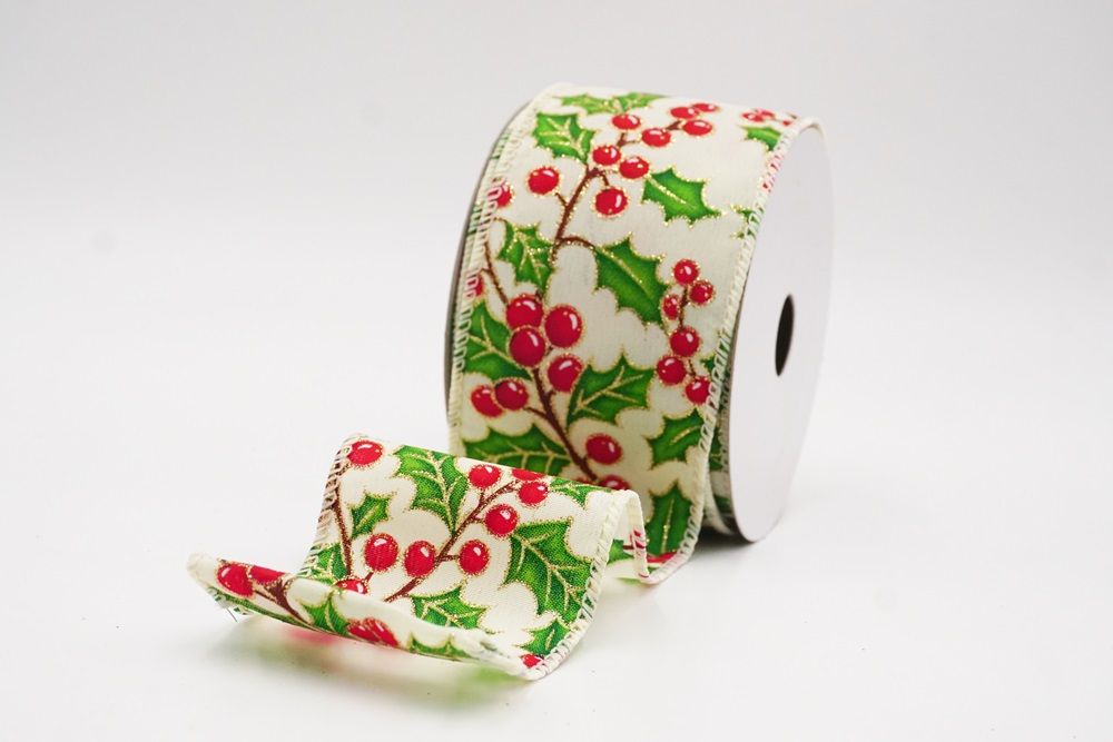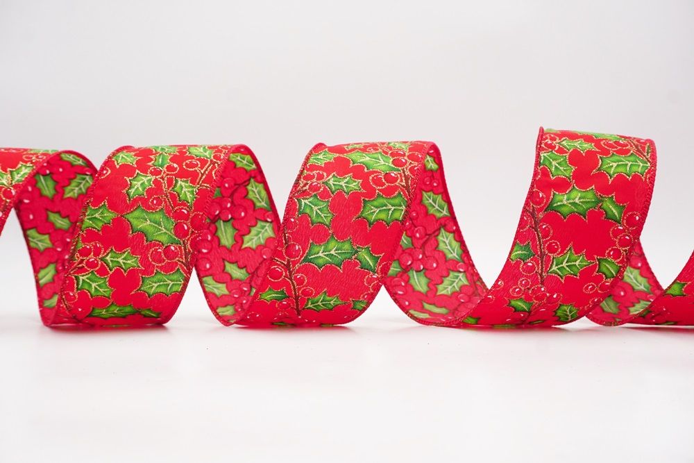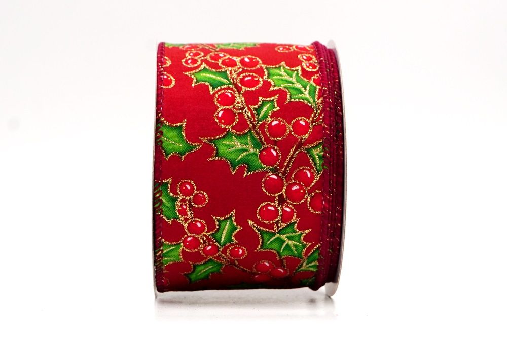 Kerstbes & Hulstbladeren Bedrade Lint_KF9832