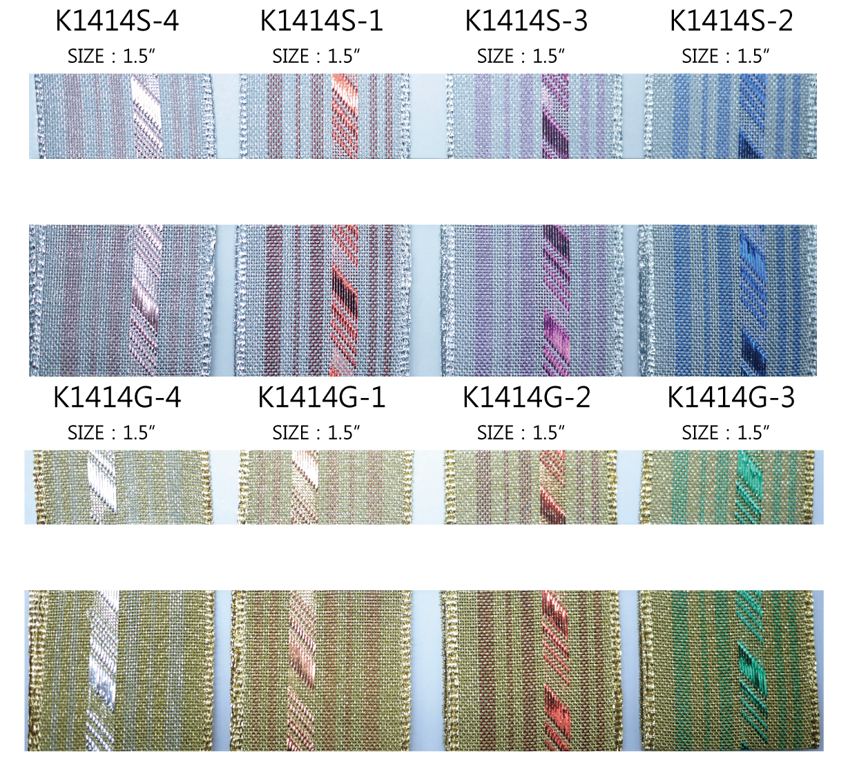 Deze serie is een 1-1/2 inch volledig metalen lint met een opvallende metallic kleur die erdoorheen is geweven. We gebruiken een ronde soort zilver metallic draad om dit lint als basis te weven, en gebruiken een andere metallic kleur om het te accentueren. Het is momenteel verkrijgbaar in rood/zilver, koningsblauw/zilver, paars/zilver en lichtroze/zilver. Deze lint komt ook in een gouden versie. Vraag ons om kleurenkaarten om dit te controleren. De rand is zonder draad. Geweldig voor kerstversieringen, strikken, cadeaupapier en meer waar een beetje bling nodig is.