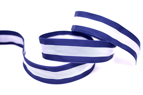 Dit lint heeft witte geweven strepen in het midden. Het ontwerp is vrij eenvoudig, maar het maakt het hele lint interessanter. De lichte basis van het lint helpt ook om een levendige uitstraling te creëren. De serie is momenteel beschikbaar in roze, rood, marineblauw, appelgroen en bosgroen, maar we staan open voor aangepaste kleuren.