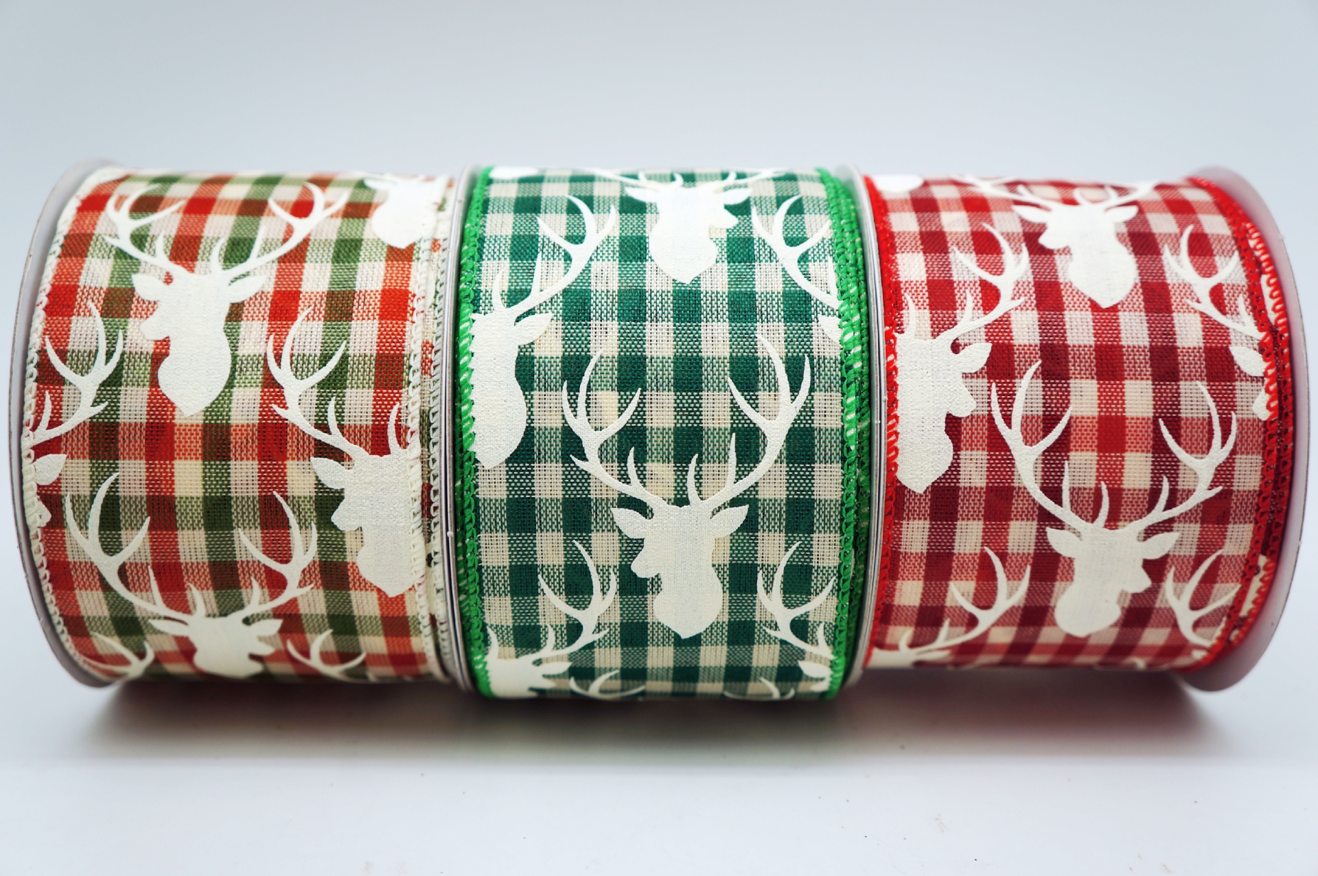 Deze lintserie is beschikbaar in alle maten vanaf 1-1/2 inch en groter. Dit rendier ruitjeslint heeft bedrade randen afgewerkt met matte bijpassende draad om het lint zijn vorm te laten behouden en om de strikken hun vorm te laten houden.