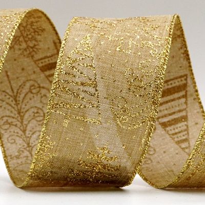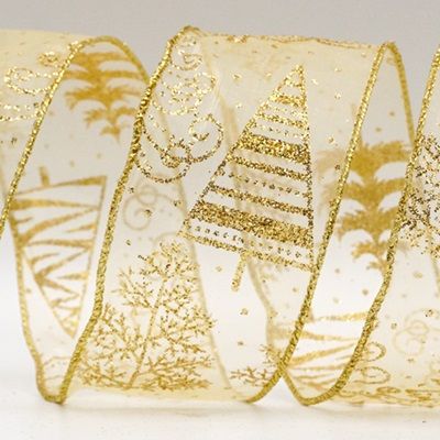 Gewoon Geweven Gouden Glitter Kerstbomen Lint_KF7330.KF7331