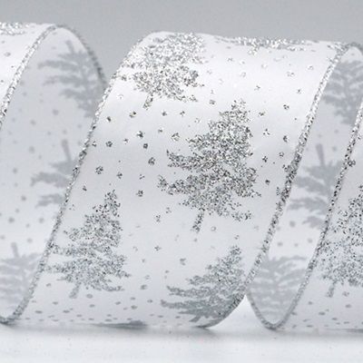 Glitter Besneeuwde Kerstbomen Lint_KF7202