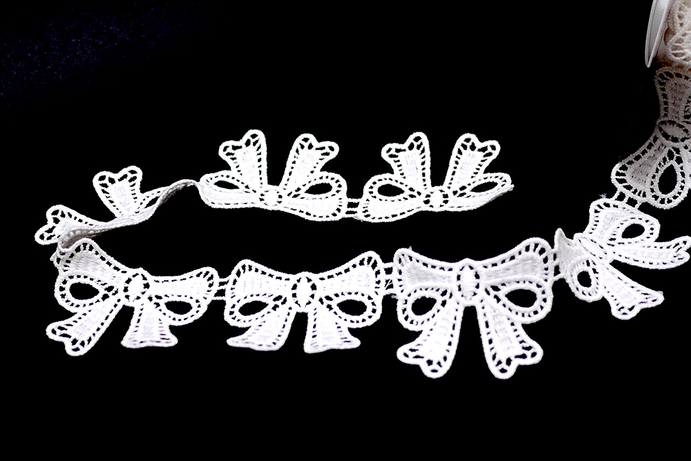 Een 45mm kantlint met de vorm van strikken. Dit kantlint is verkrijgbaar in het wit. Je kunt de kanten strikken in stukjes knippen en individueel gebruiken, of zo lang als gewenst. Het is geweldig voor naaien, knutselprojecten, cadeaus en alle decoraties.