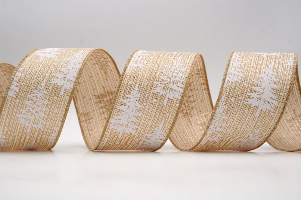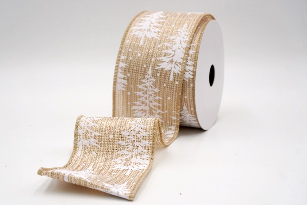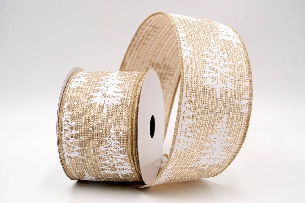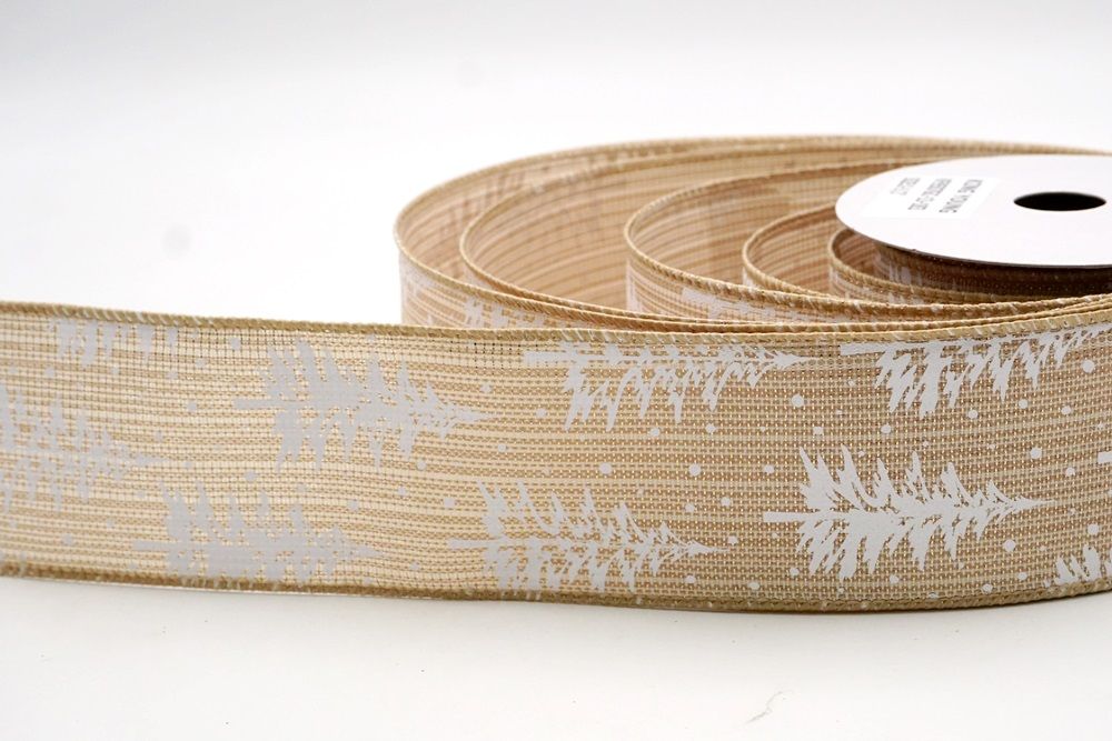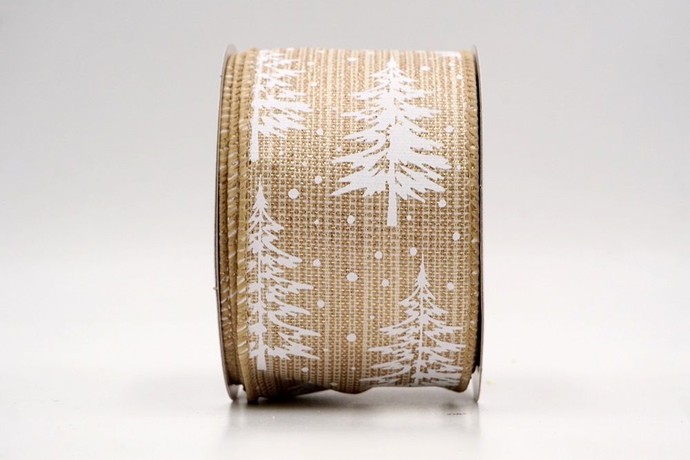 Breng een vleugje winterse charme naar je feestelijke creaties met onze Sneeuwachtige Kerstdennenboom Gewikkelde Lint. Ontworpen met een tijdloos dennenboommotief bedekt met vallende sneeuw, vangt dit lint de magie van een besneeuwd bos tijdens Kerstmis. Het is beschikbaar in faux jute, wat het een rustieke maar elegante textuur geeft die prachtig werkt voor seizoensgebonden knutselprojecten. De kleurkeuze omvat natuurlijk, grijs, donkerblauw, rood, donkerrood en khaki, waardoor je een breed scala hebt om perfect aan te sluiten bij elk feestthema of decoratiestijl. De maten variëren van 1 inch tot 2,5 inch, met grotere breedtes op aanvraag beschikbaar., je de flexibiliteit geeft om de juiste maat voor je project te kiezen. Of je nu een gezellige boerderijlook plant of een meer levendige feestelijke display, dit lint