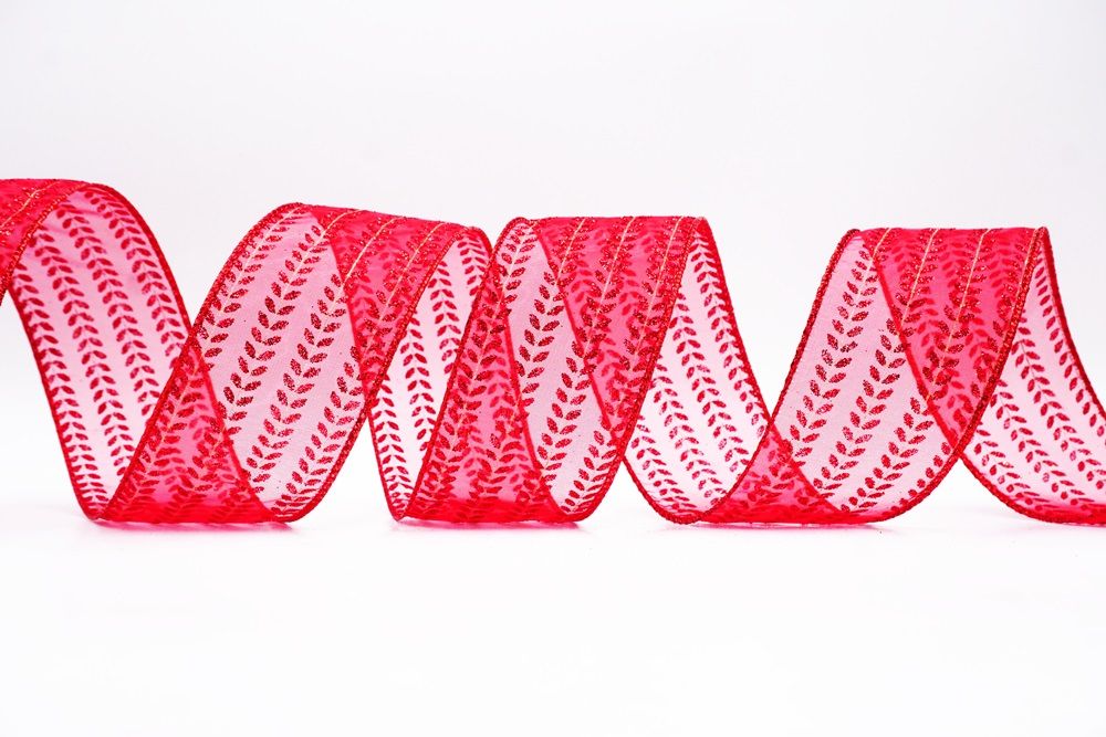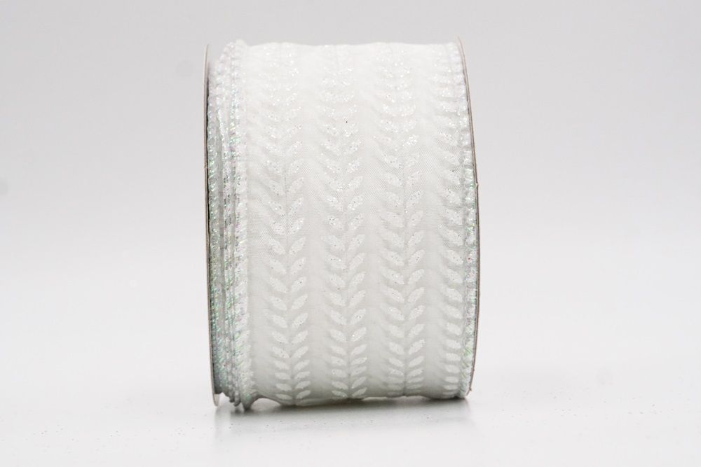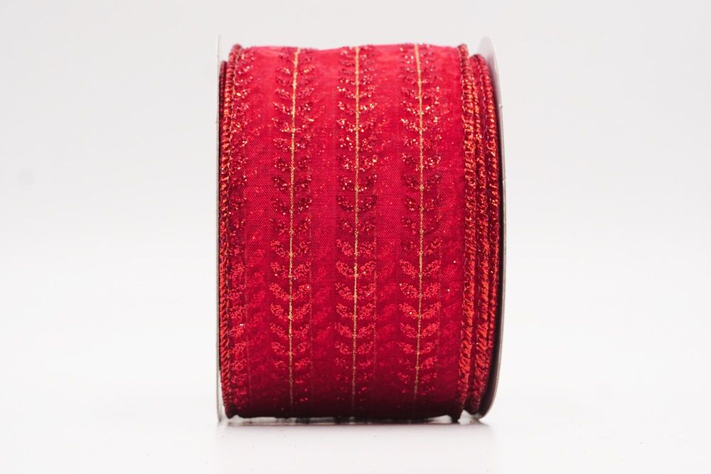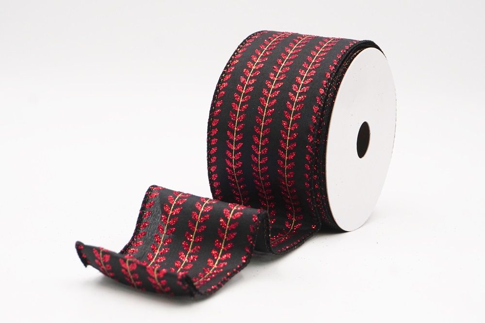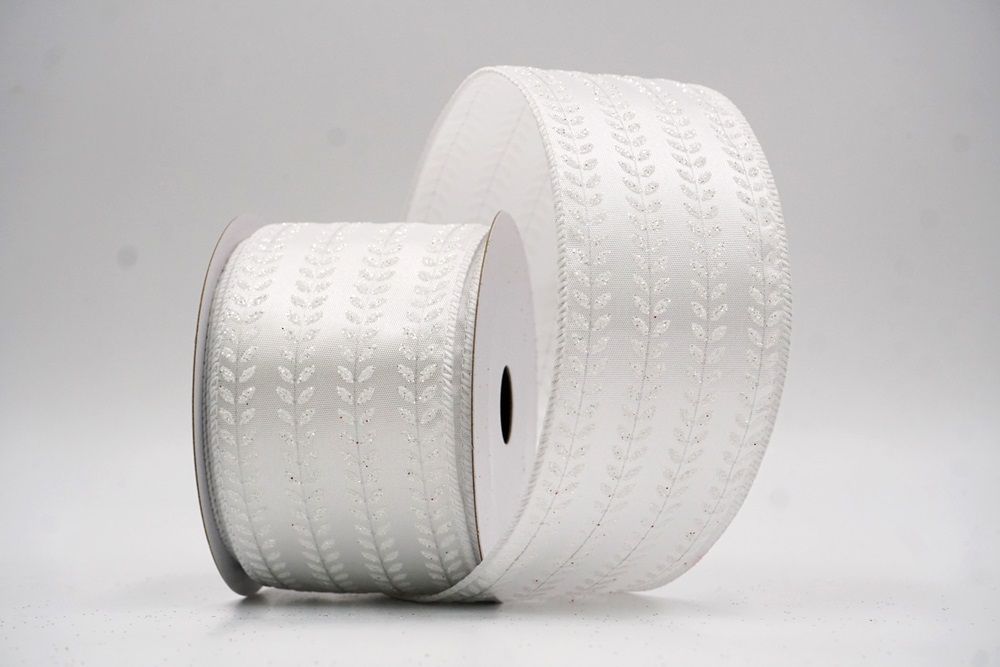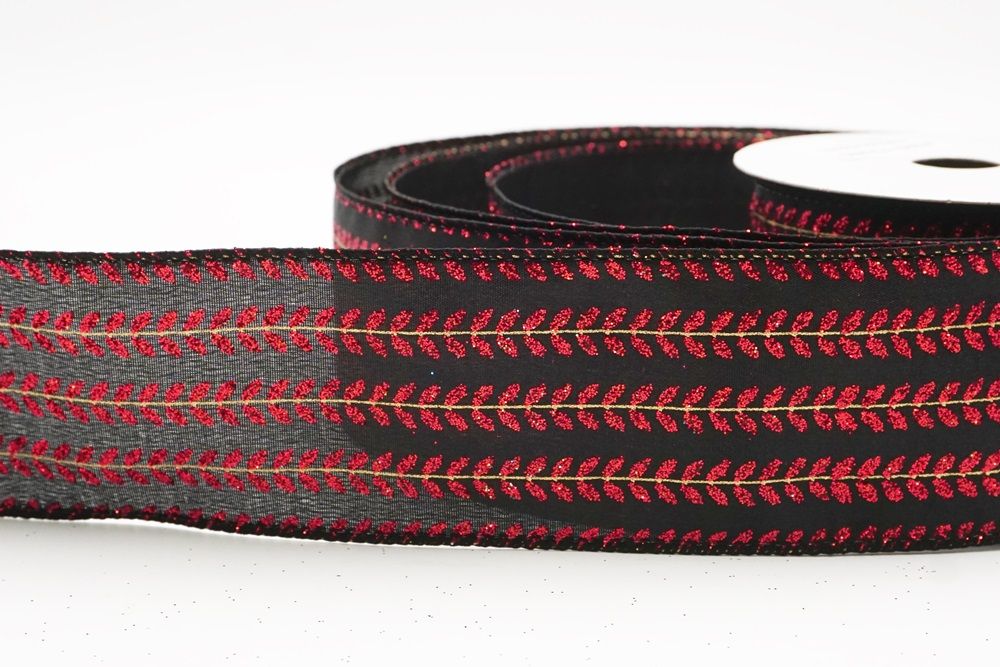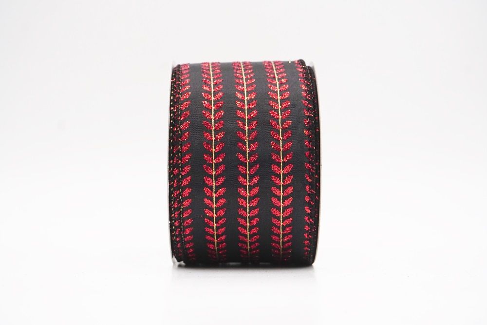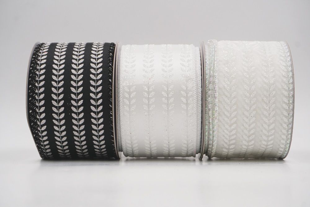 Ta wstążka uchwyca świąteczny urok dzięki delikatnym metalicznym detalom w haft liściowy, dostępnym w szerokiej gamie kolorów: Kremowy, Czerwony, Kremowy-Gładki, Czerwony-Gładki, Czerwony, Czarny, Czarny-Czerwony, Biały, Czarny-Biały i Biały-Przezroczysty.