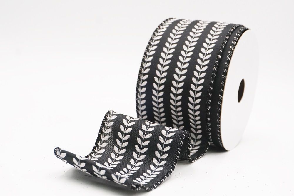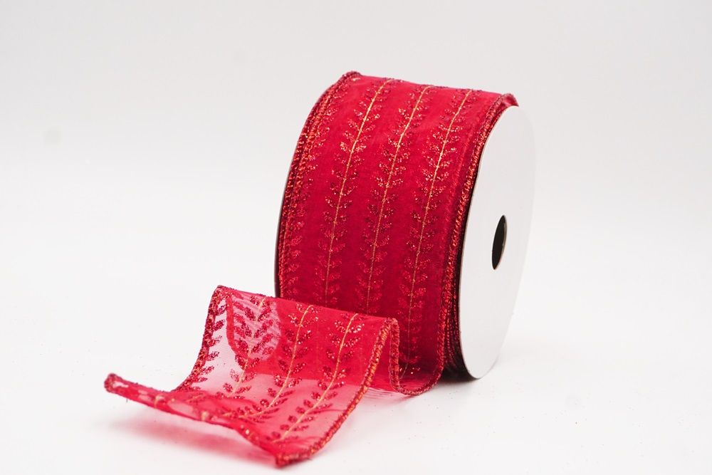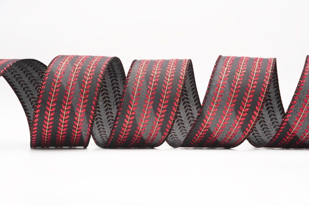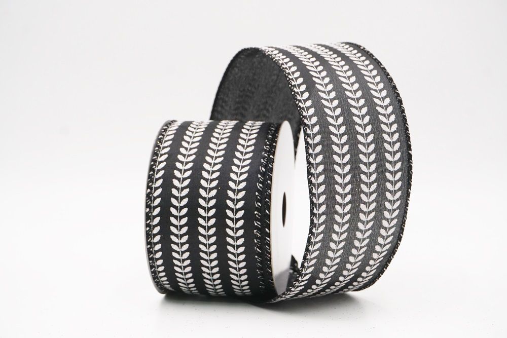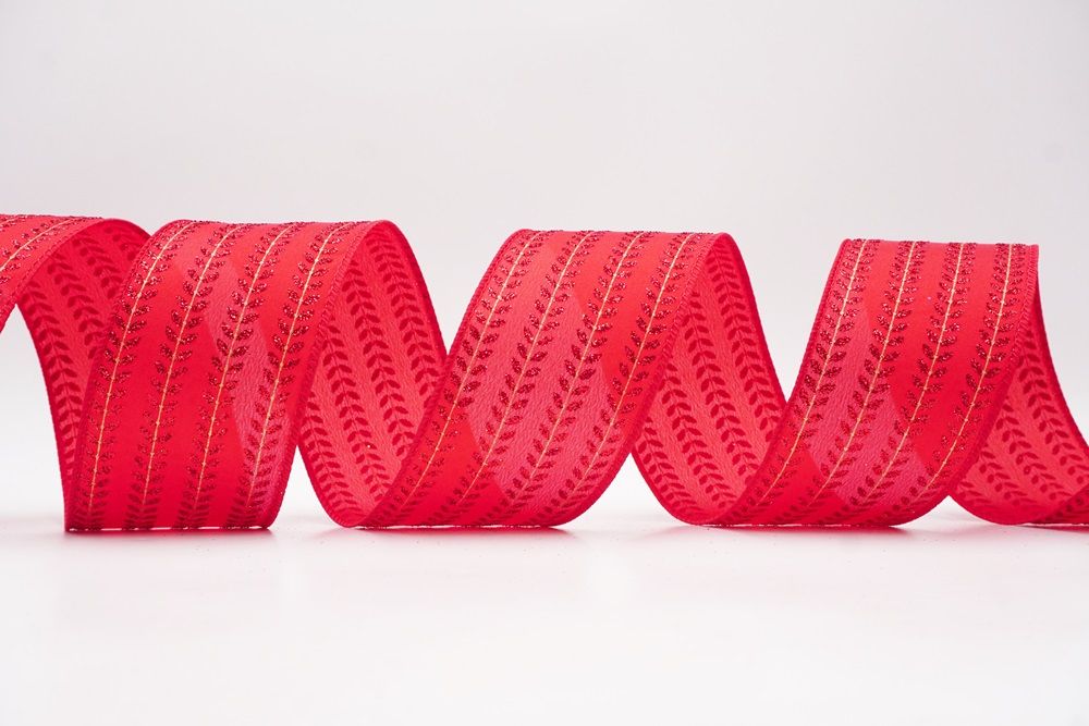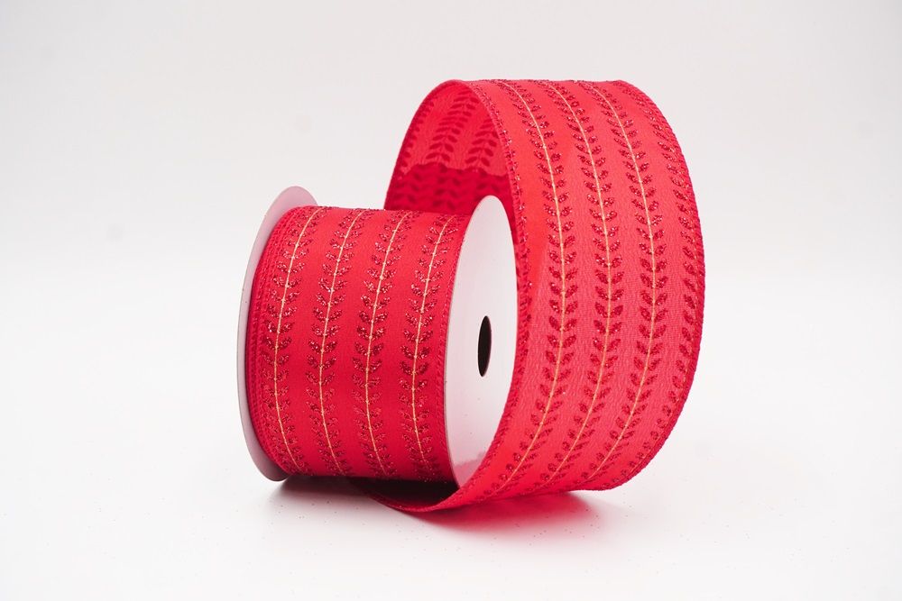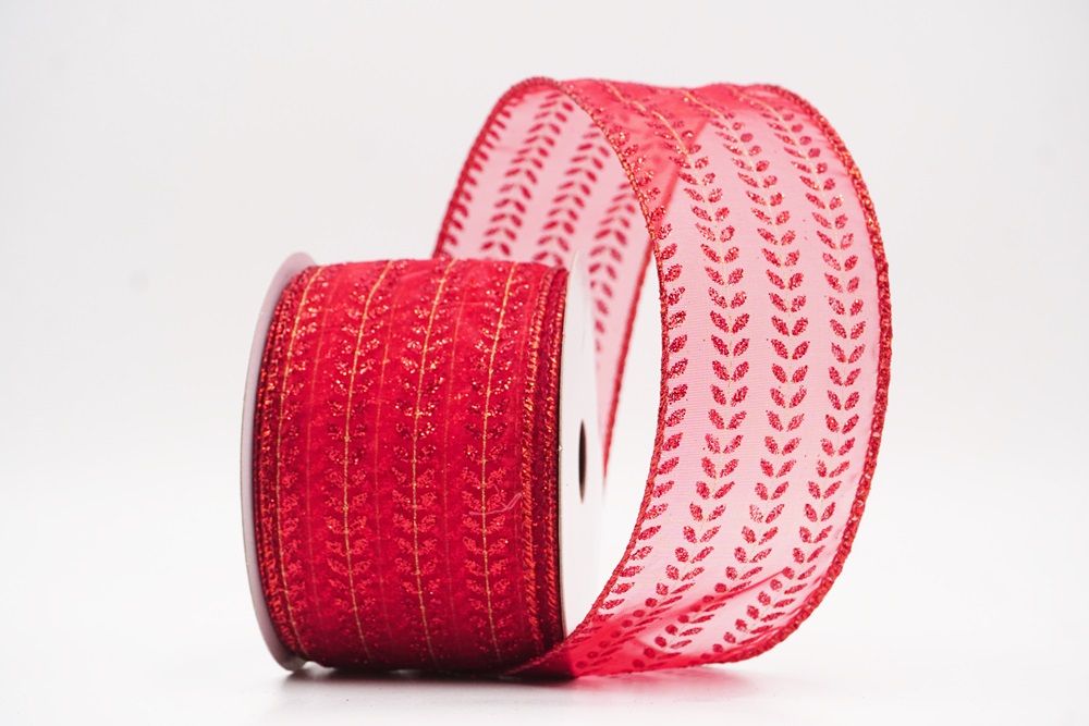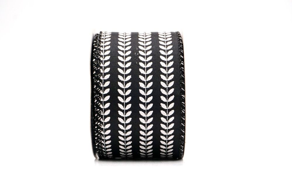 Ta wstążka uchwyca świąteczny urok dzięki delikatnym metalicznym detalom w haft liściowy, dostępnym w szerokiej gamie kolorów: Kremowy, Czerwony, Kremowy-Gładki, Czerwony-Gładki, Czerwony, Czarny, Czarny-Czerwony, Biały, Czarny-Biały i Biały-Przezroczysty.