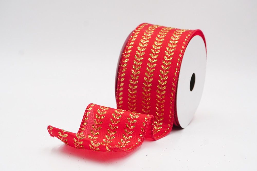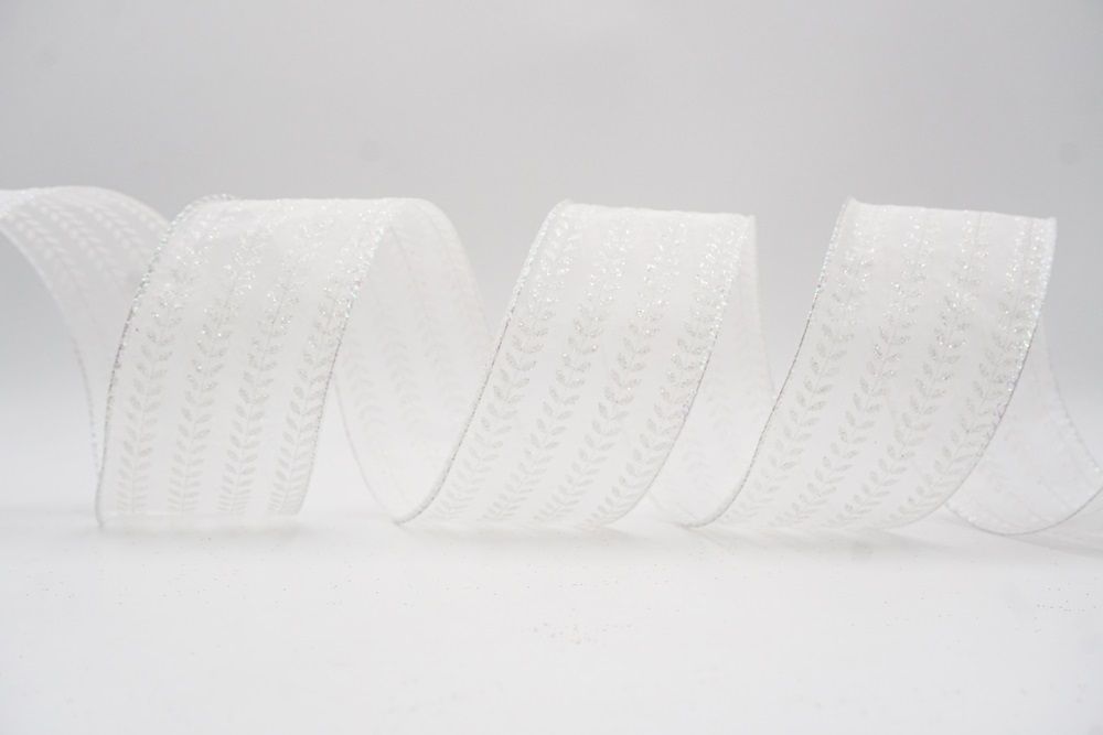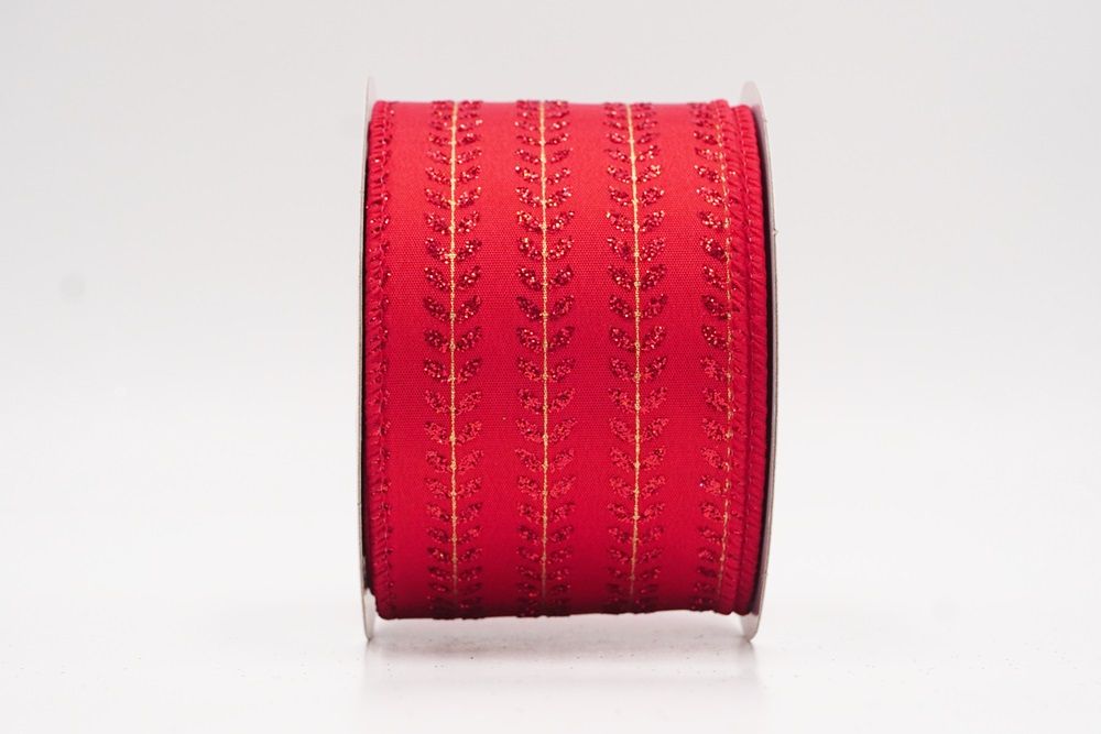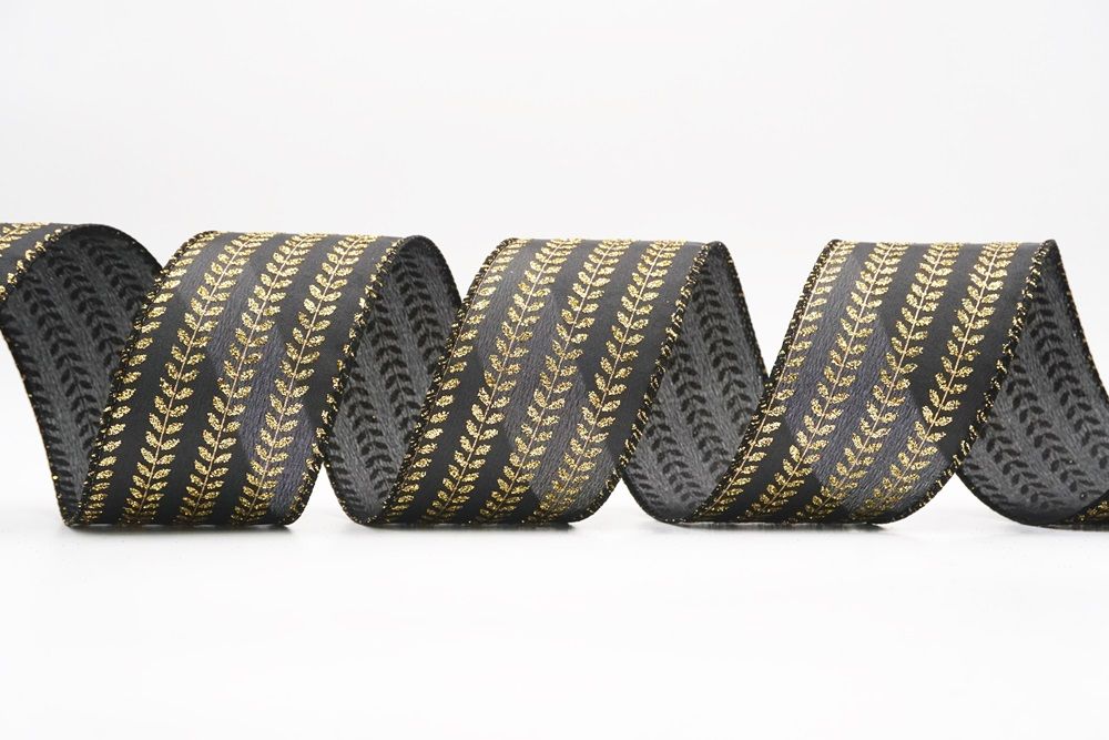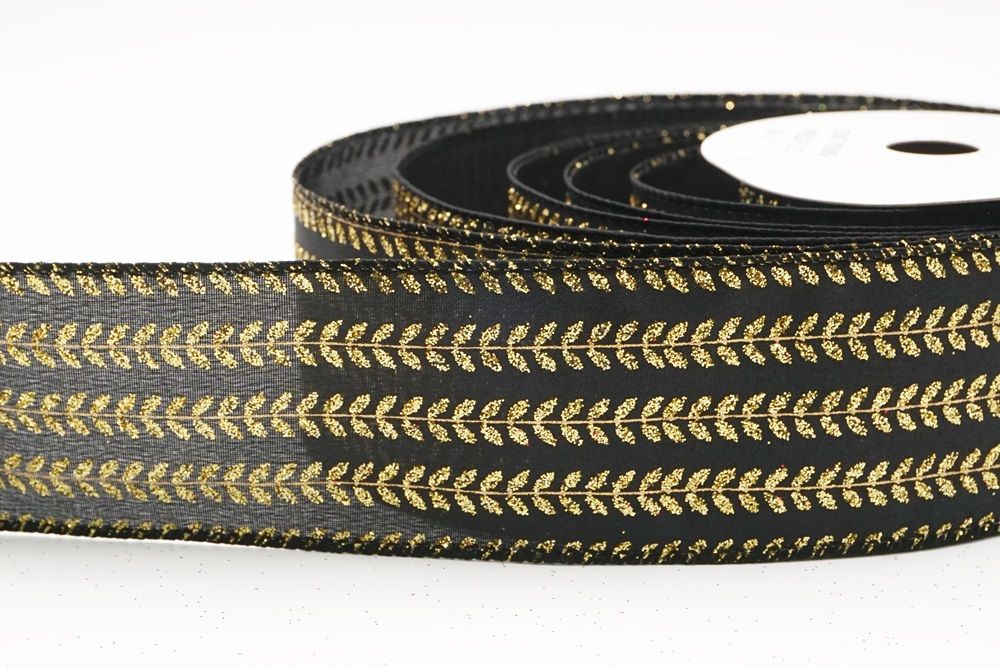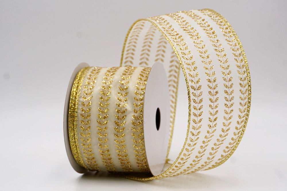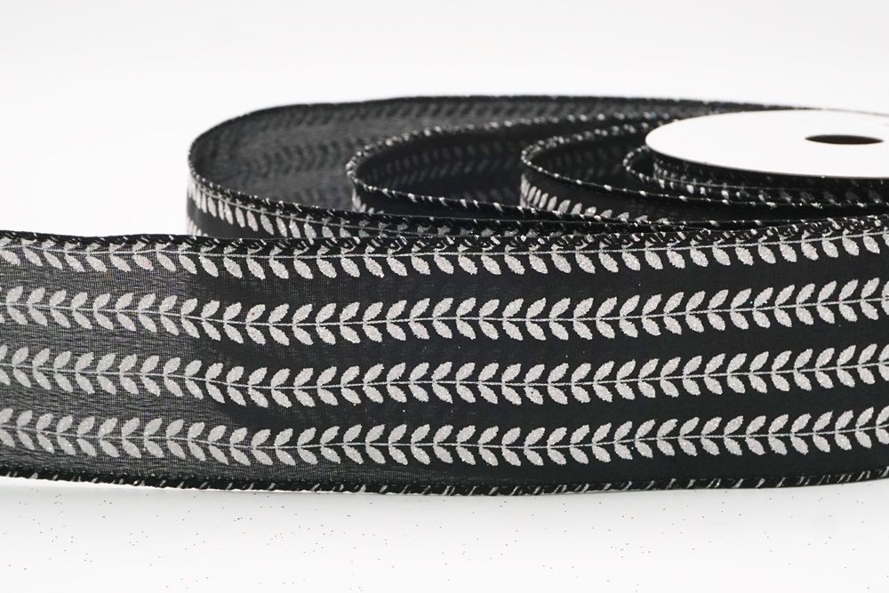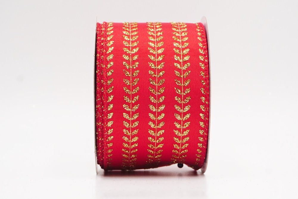 Stylowa wstążka z delikatnymi metalicznymi akcentami w kształcie liści, nadająca elegancki, świąteczny wygląd.