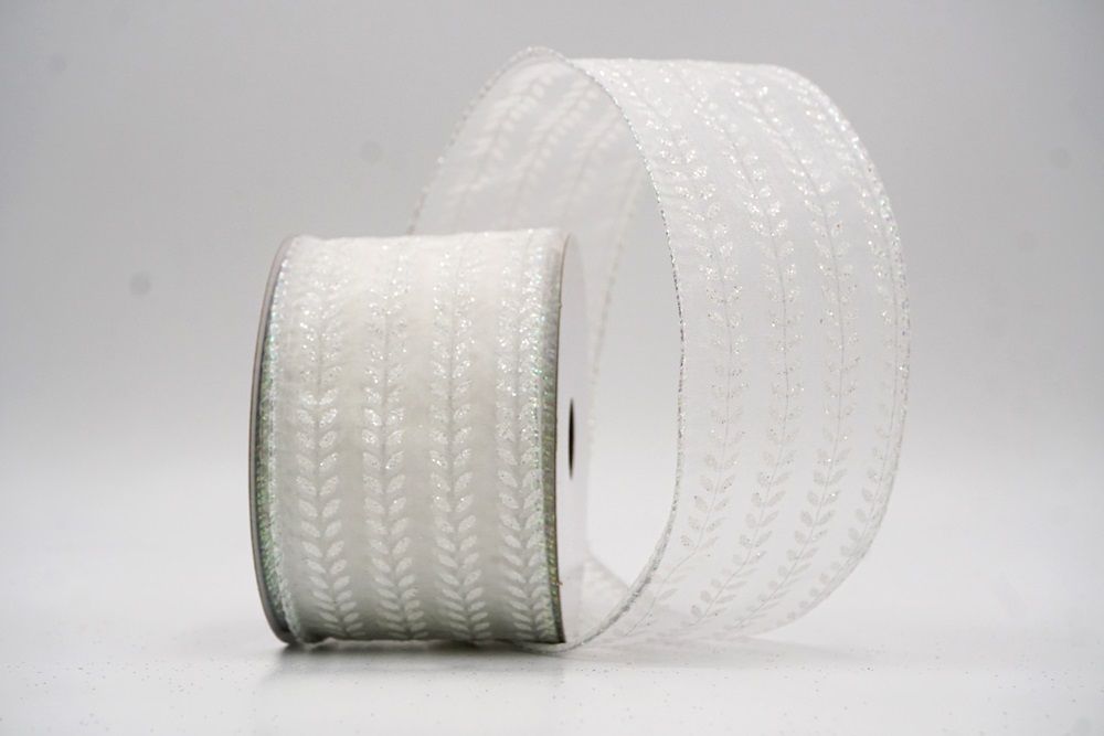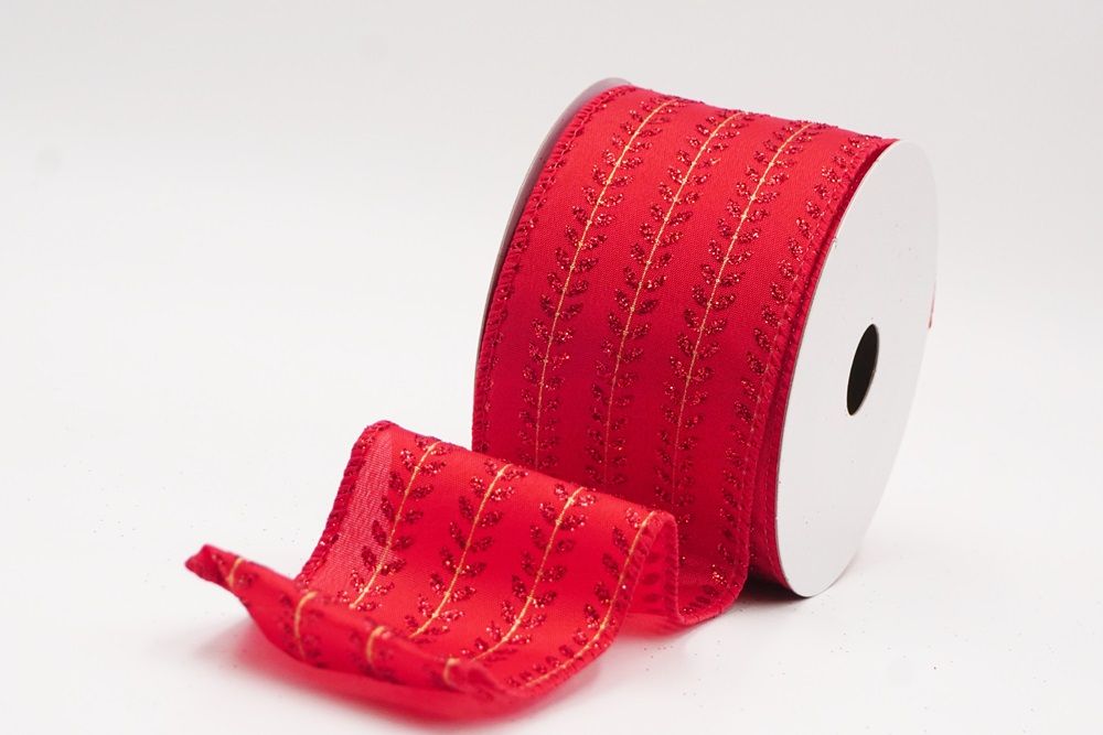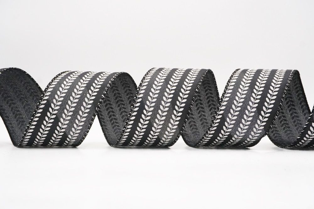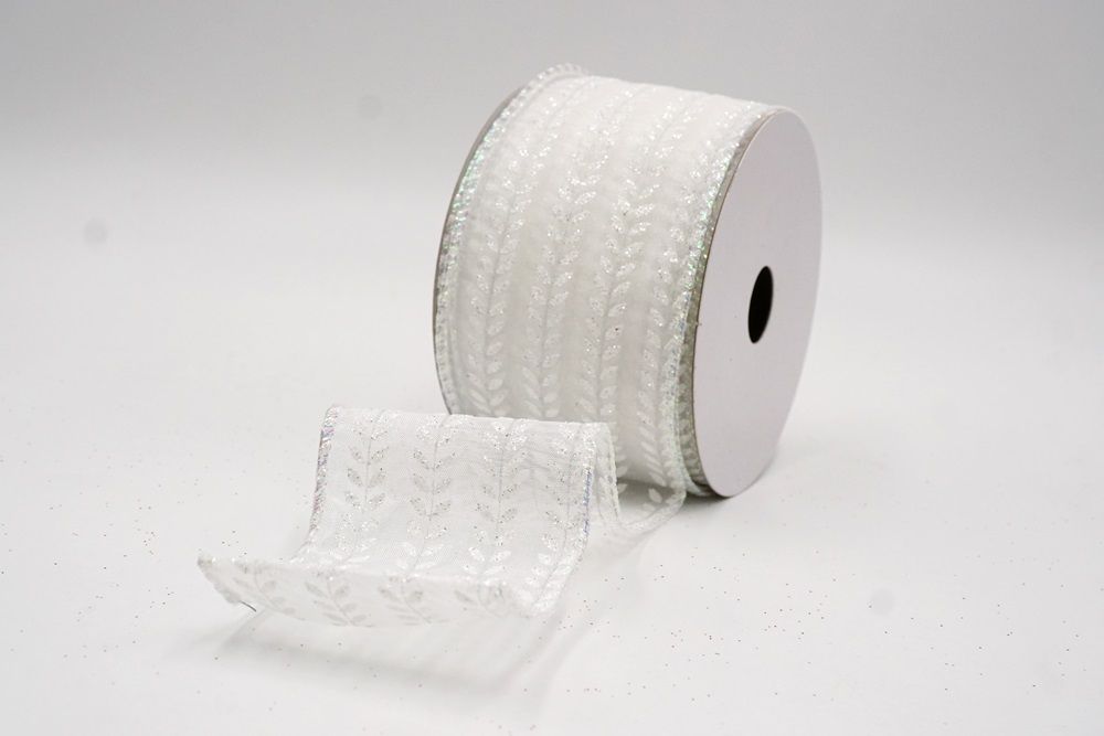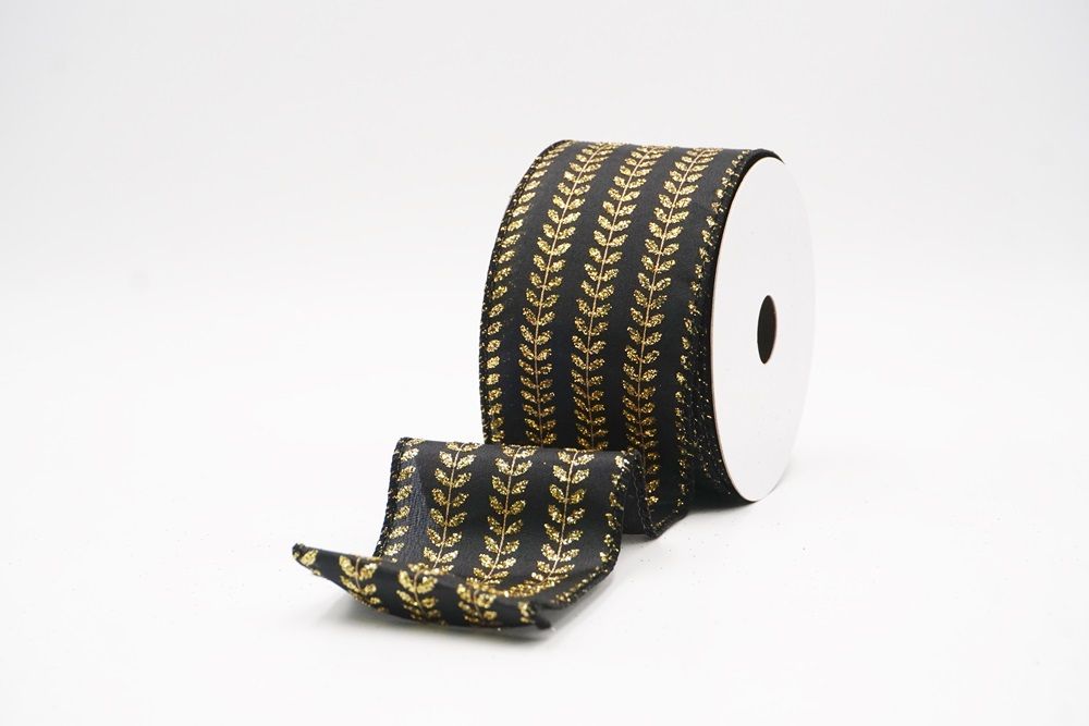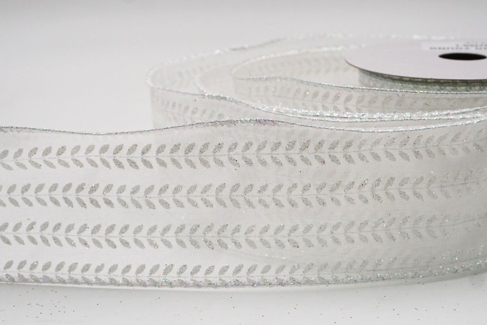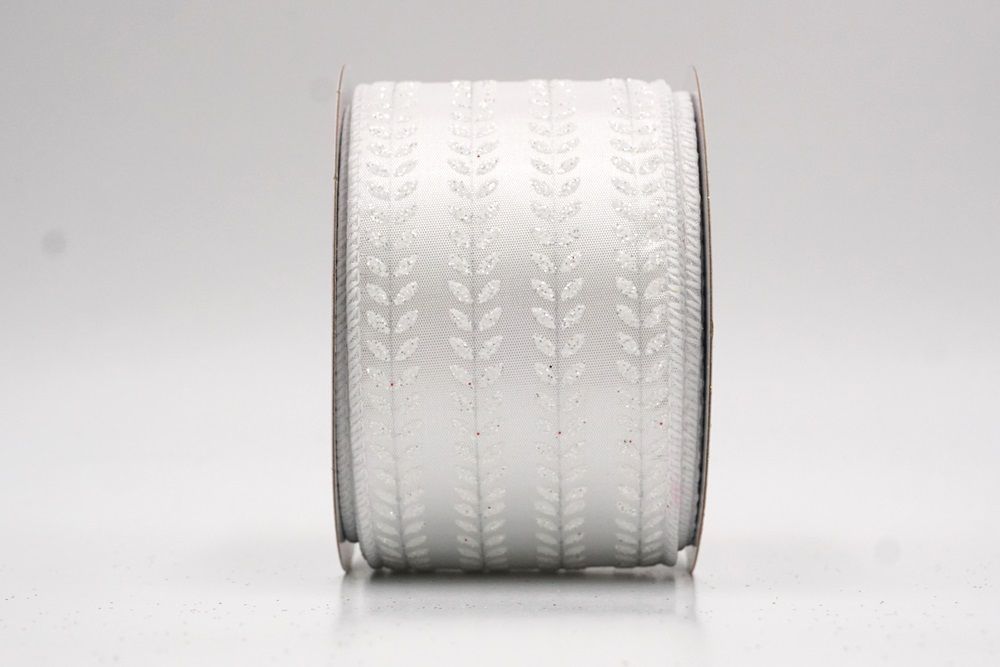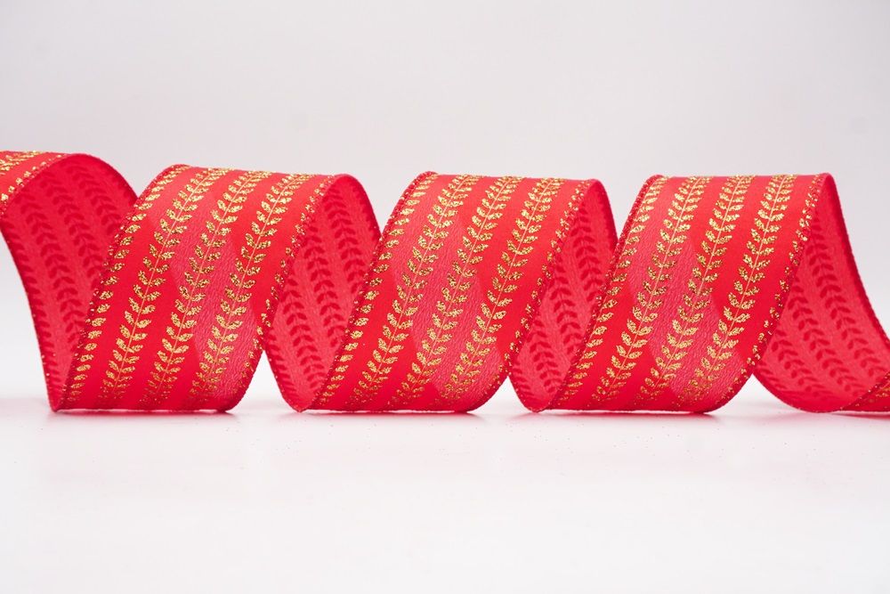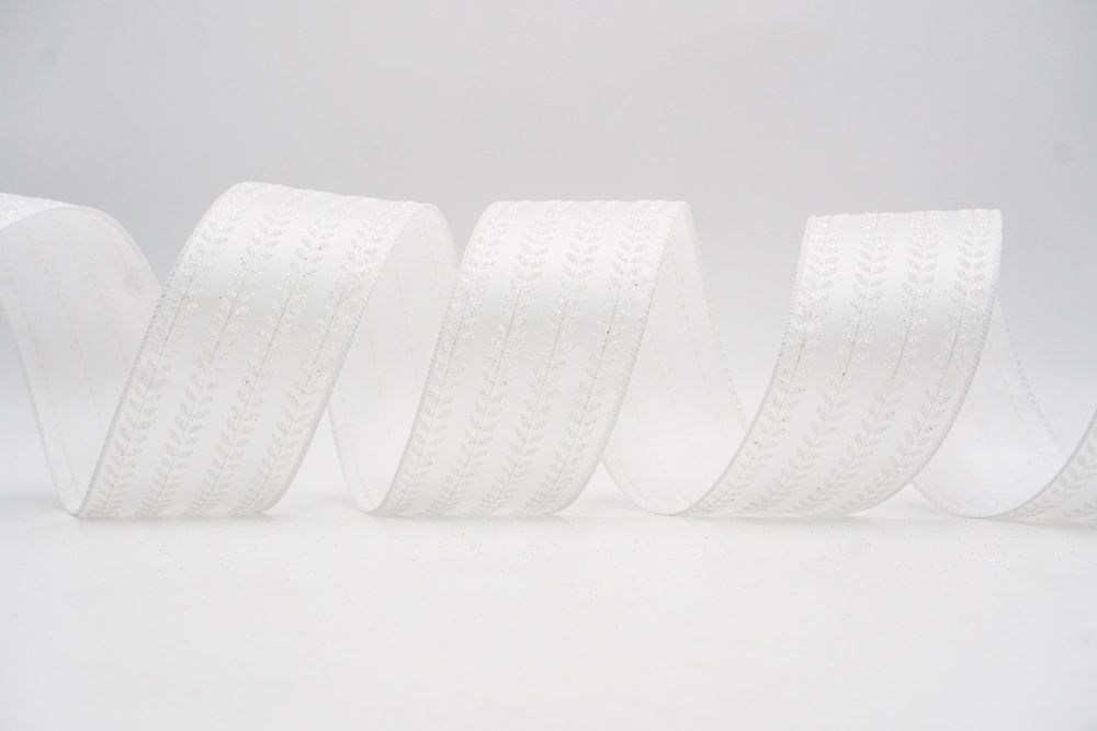 Stylowa wstążka z delikatnymi metalicznymi akcentami w kształcie liści, nadająca elegancki, świąteczny wygląd.