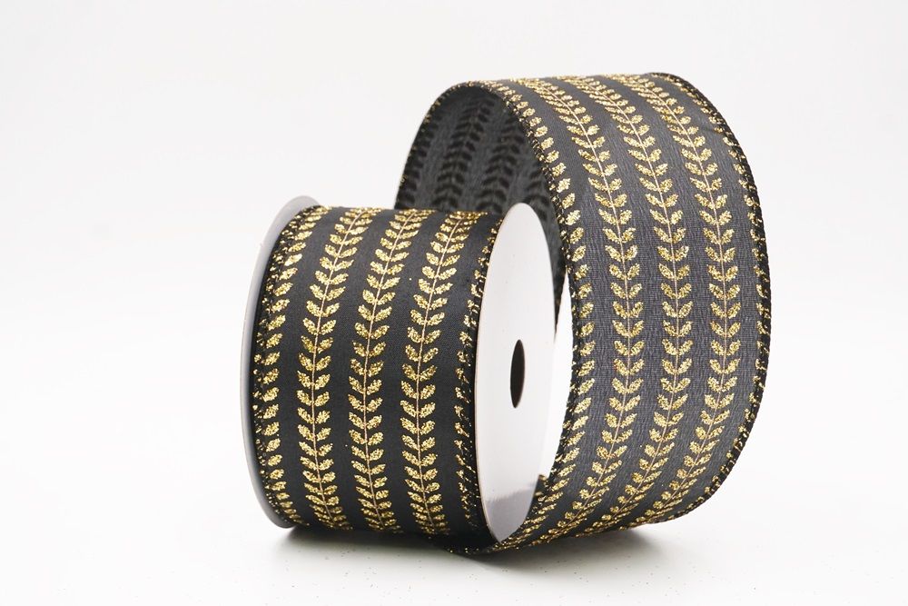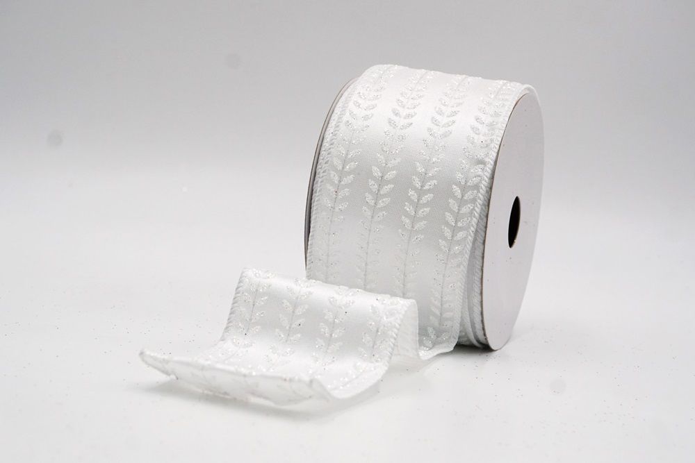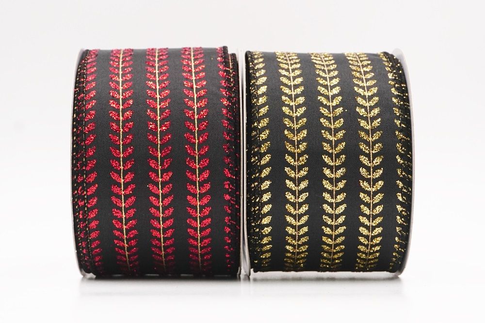 Elegancka wstążka metaliczna z haftem liściowym na Boże Narodzenie_KF9821.KF9822.KF9823.KF9824