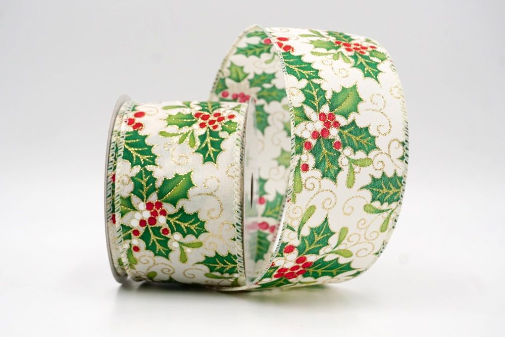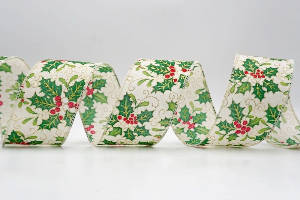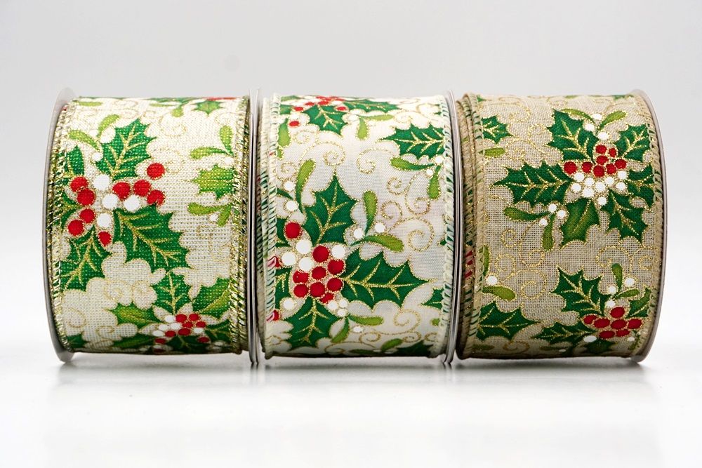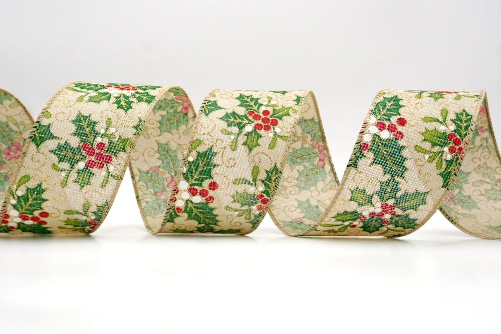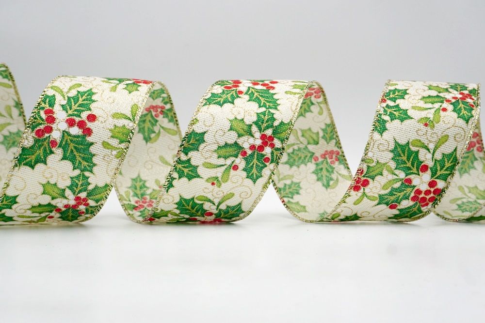 Przenieś magię sezonu do swoich świątecznych projektów z wstążką drucianą z motywem ostrokrzewu i jagód.