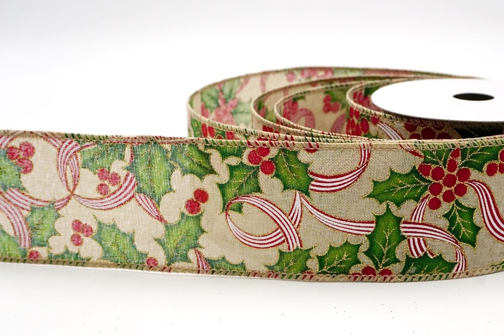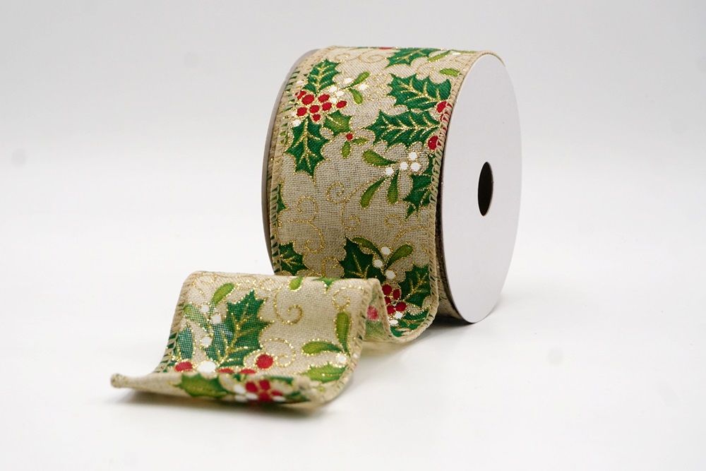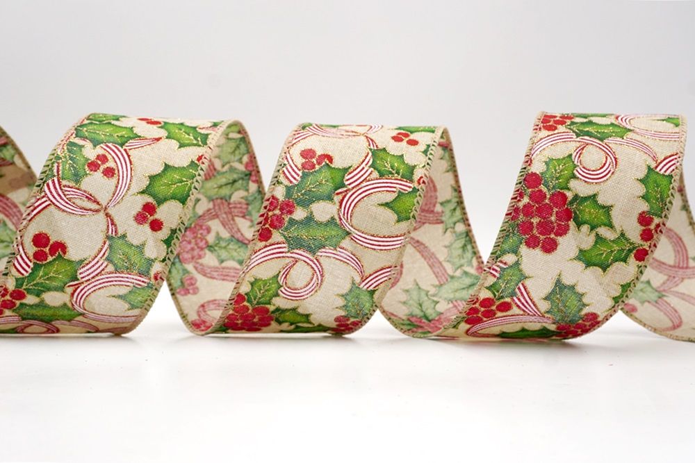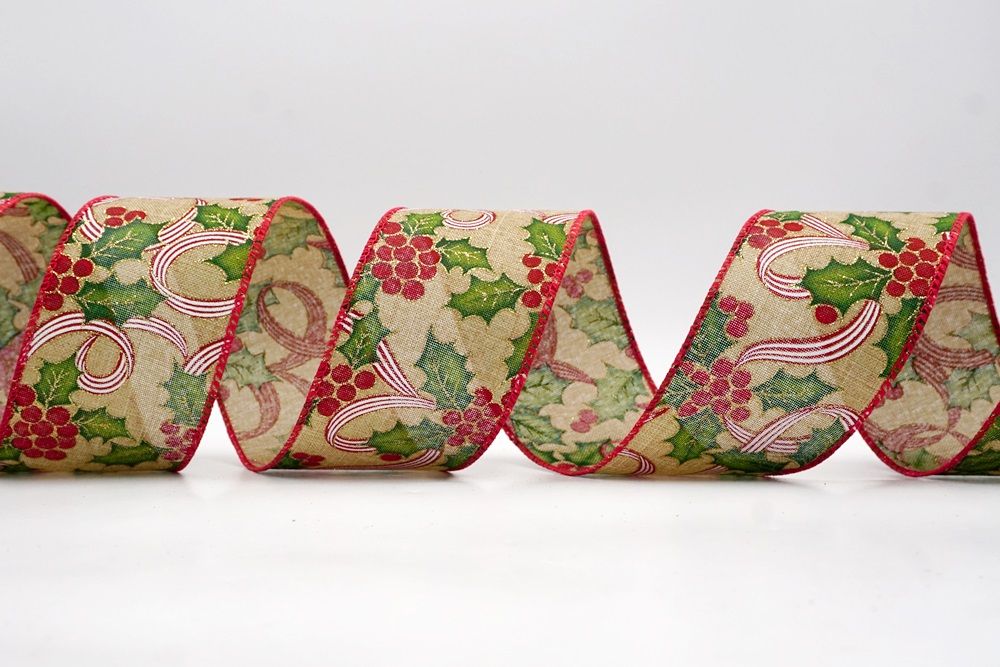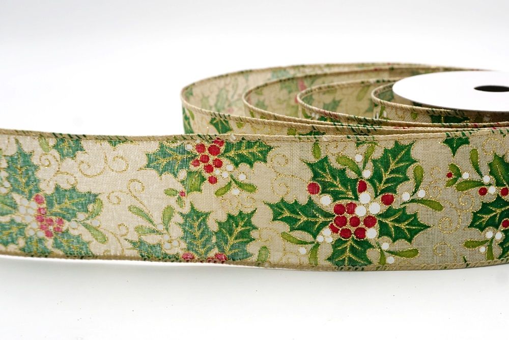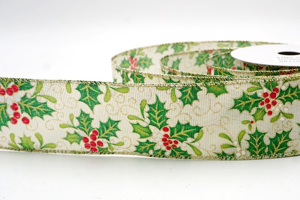 Przenieś magię sezonu do swoich świątecznych projektów z wstążką drucianą z motywem ostrokrzewu i jagód.