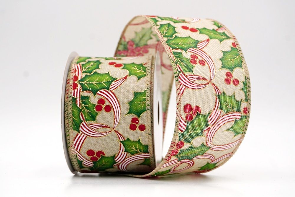Wstążka druciana z motywem ostrokrzewu i jagód_KF9799.KF9800